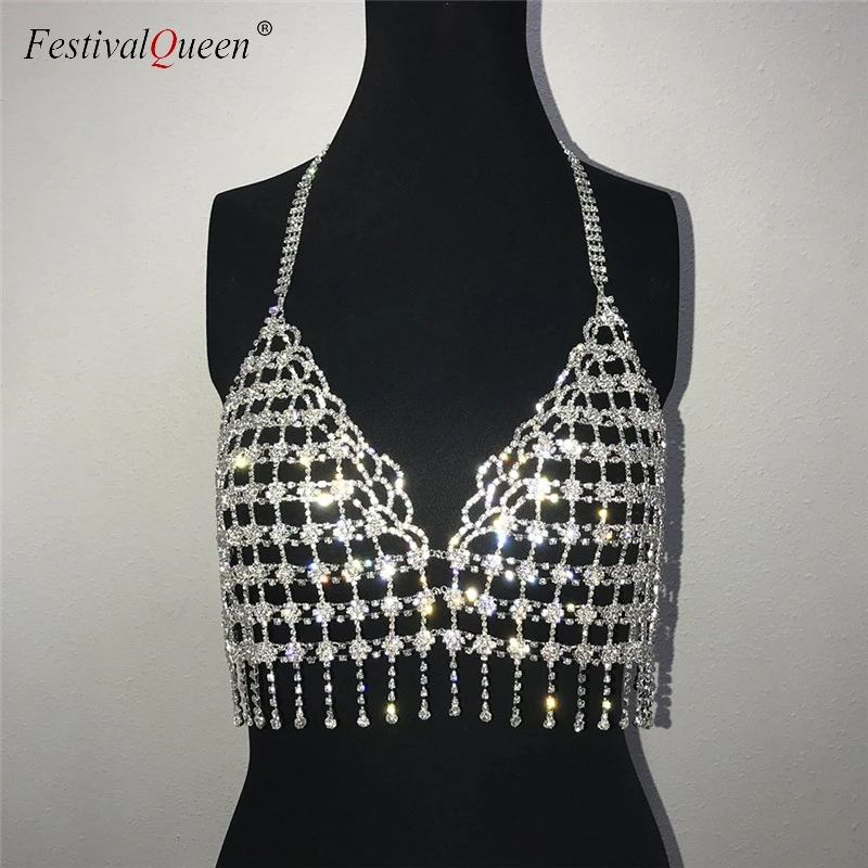 FREE SHIPPING Women Diamond Chain Patchwork Crop Tops JKP1866