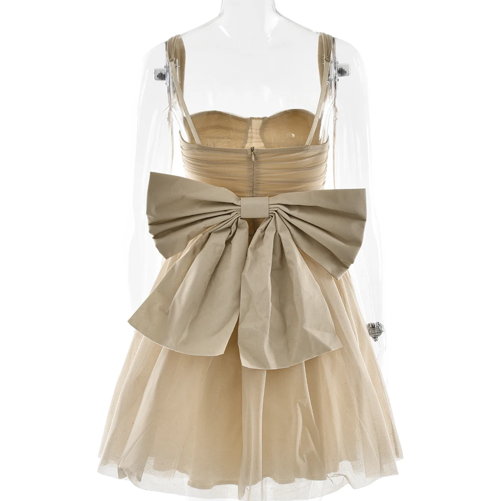 FREE SHIPPING Women Dress Apricot Spaghetti Strap Mini Dress Glitter Silk JKP7313