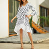 FREE SHIPPING Women Dresses V-Neck Collar polka Dot Ruffle Irregular Hem Long Dress Fashion elegant belt print party casual high-low dress JKP2507