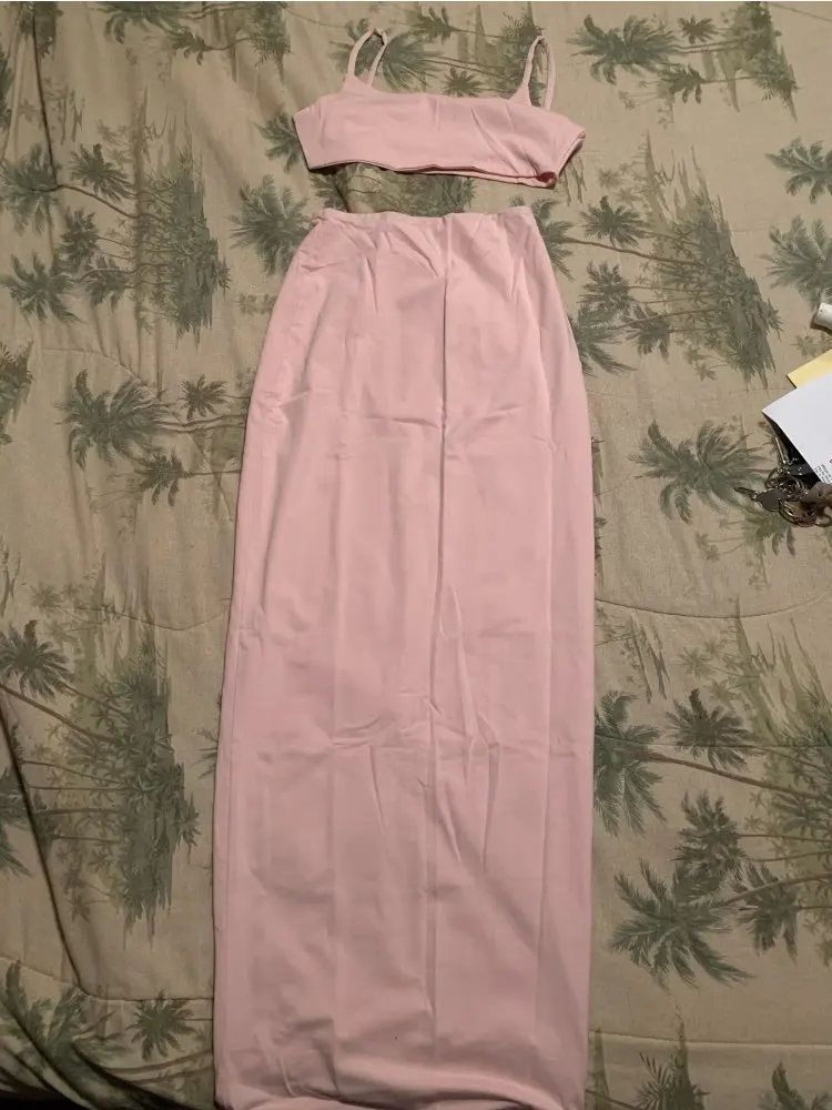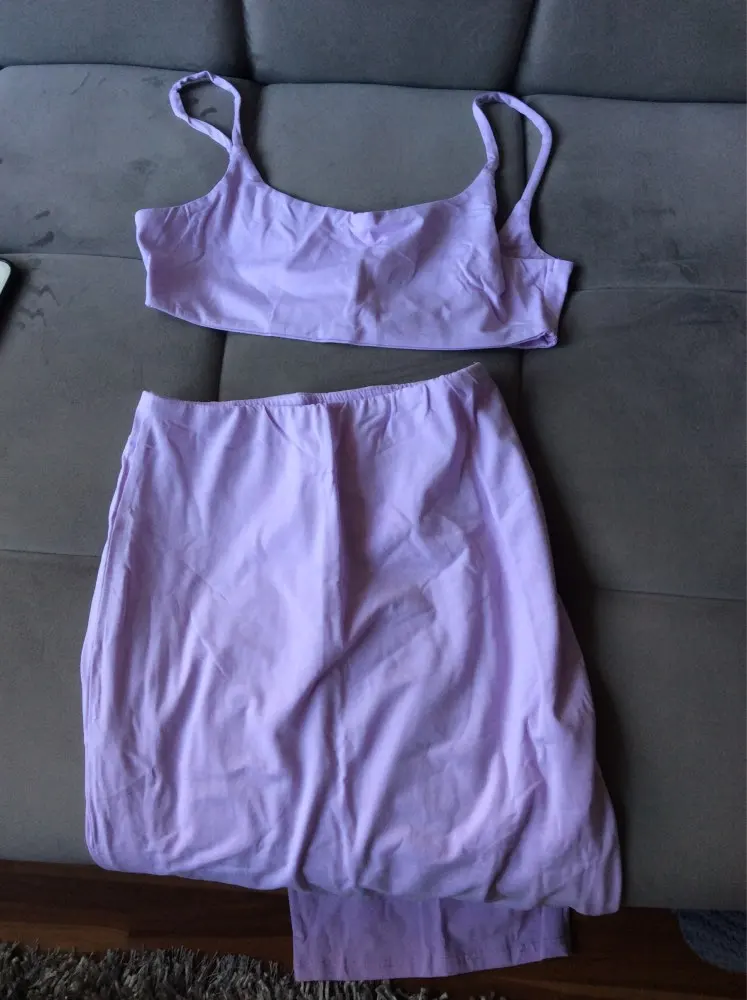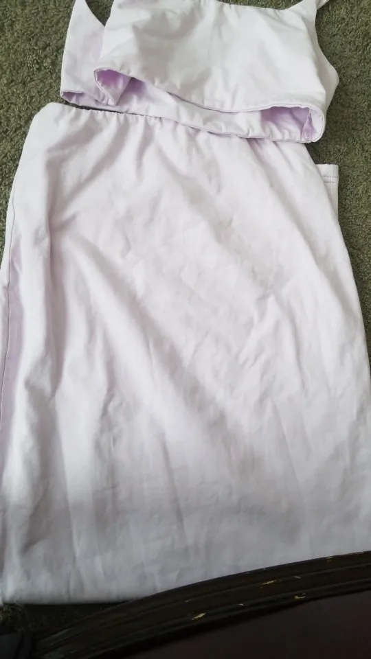 this two piece is really nice but I wish the color was more vibrant looks a little dull but other than that it's very pretty, I'll get it in white.