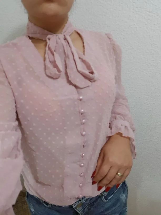THE blouse is beautiful, just the sleeves were a little short, but as has a button is not ugly. Wear size 40 of Brazil and was good