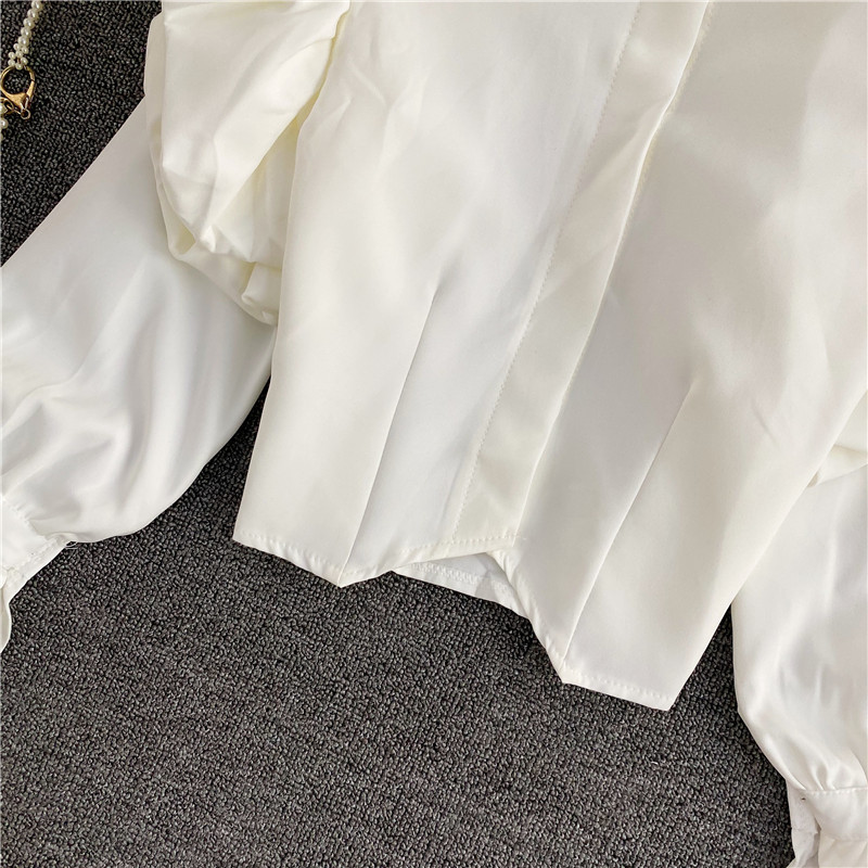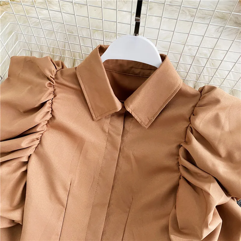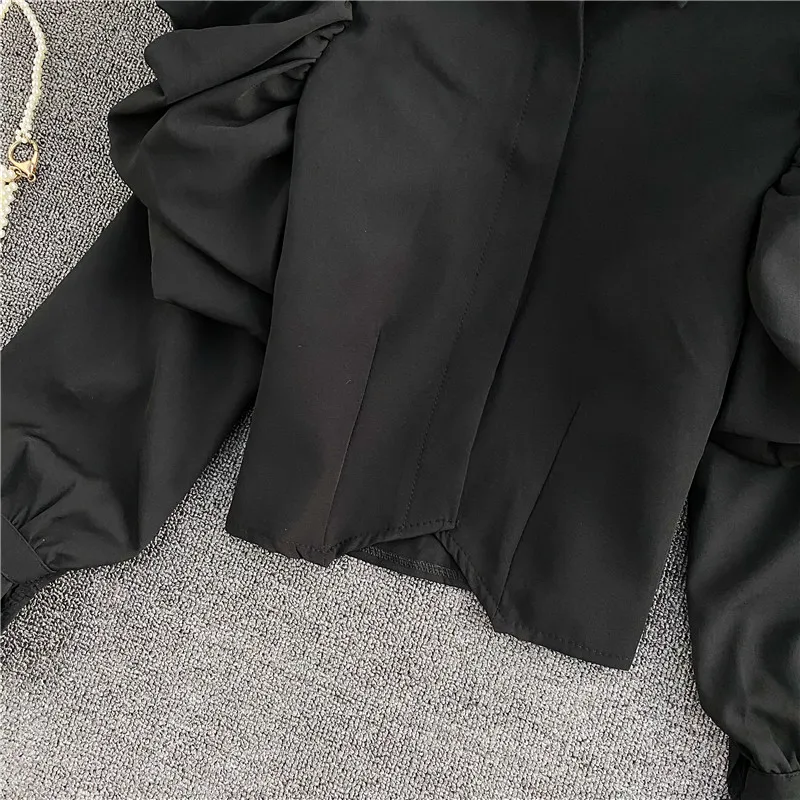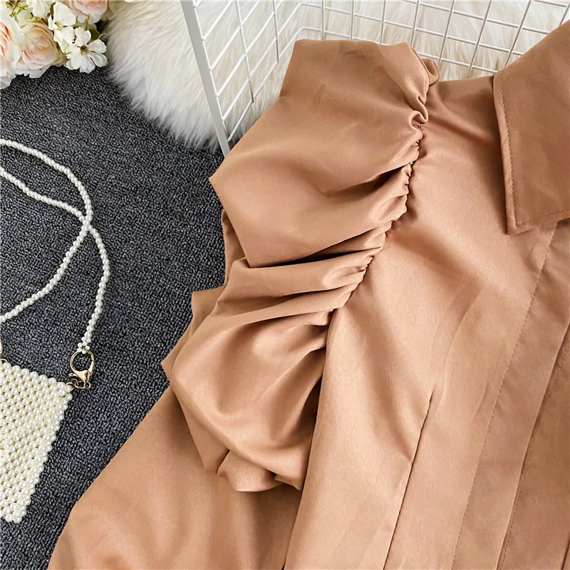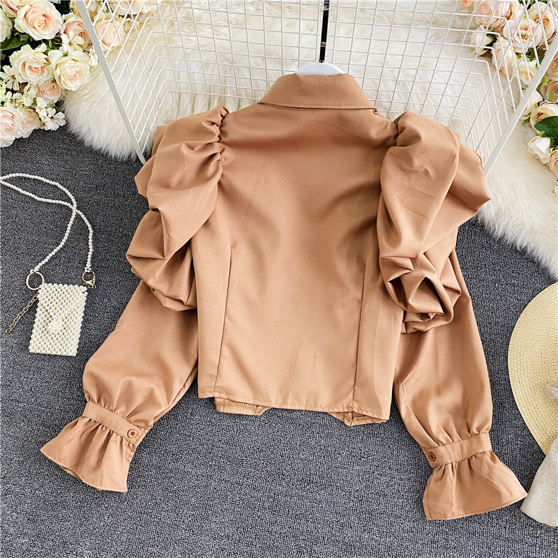 FREE SHIPPING Women Elegant Retro Vintage Ruched Puff sleeve Parisian Fashion Style JKP5871