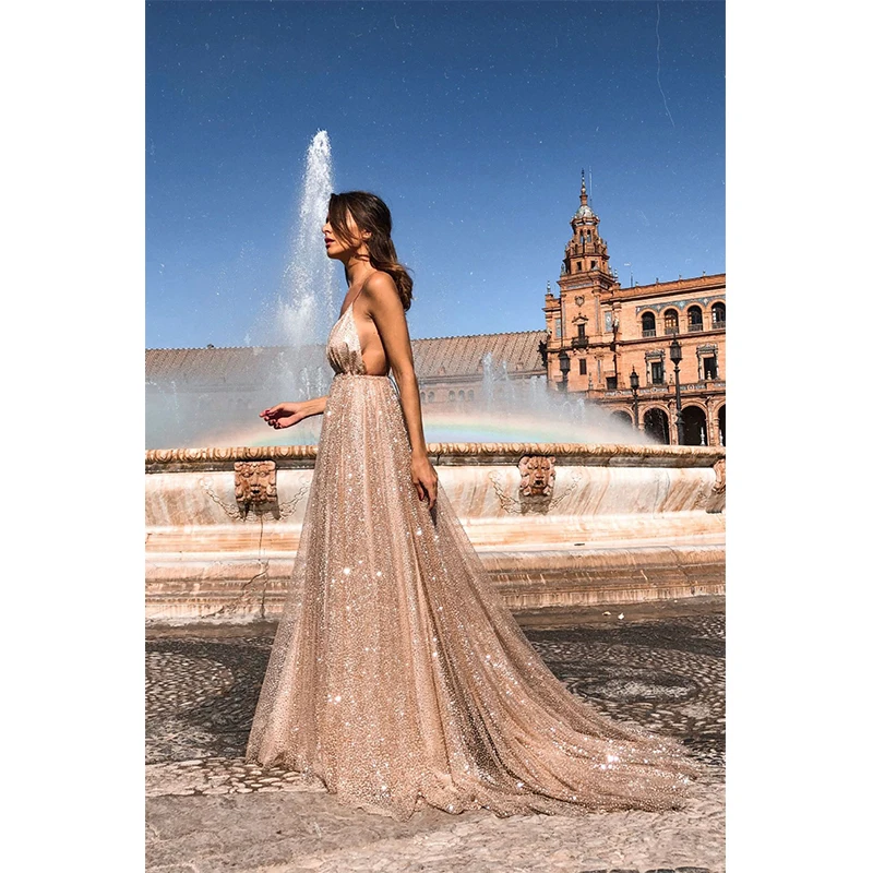 FREE SHIPPING Women Evening Dress Sexy Elegant Lace V-neck Backless Sleeveless Drawstring Ceremony Party Sequin Long Dresses JKP1555