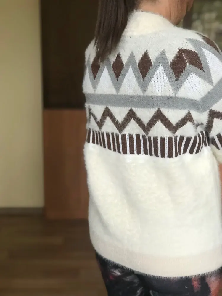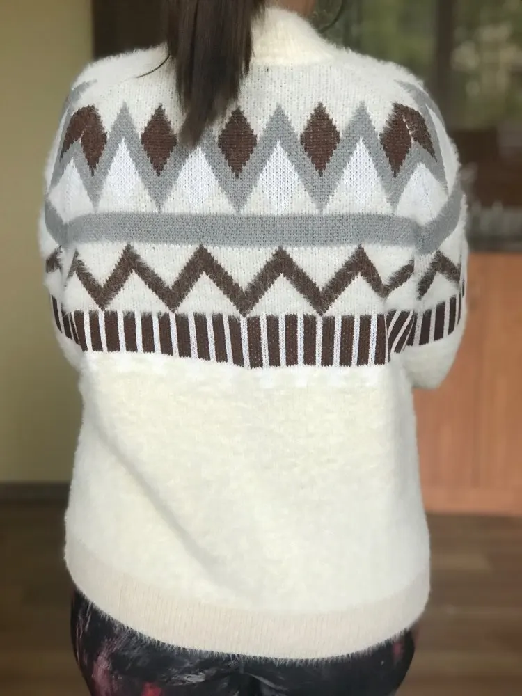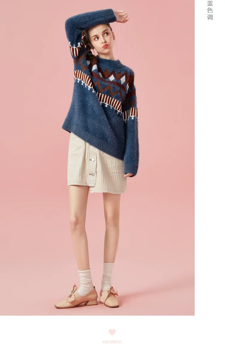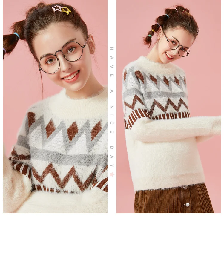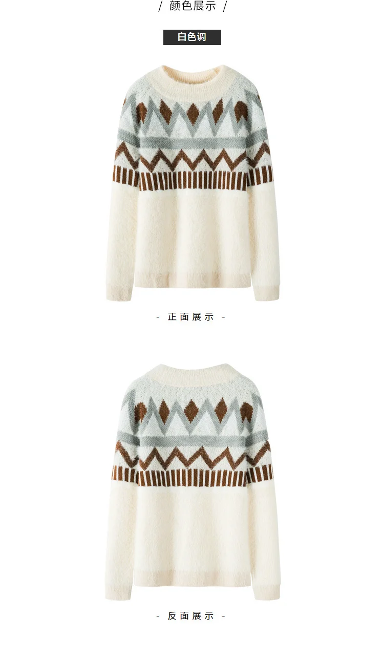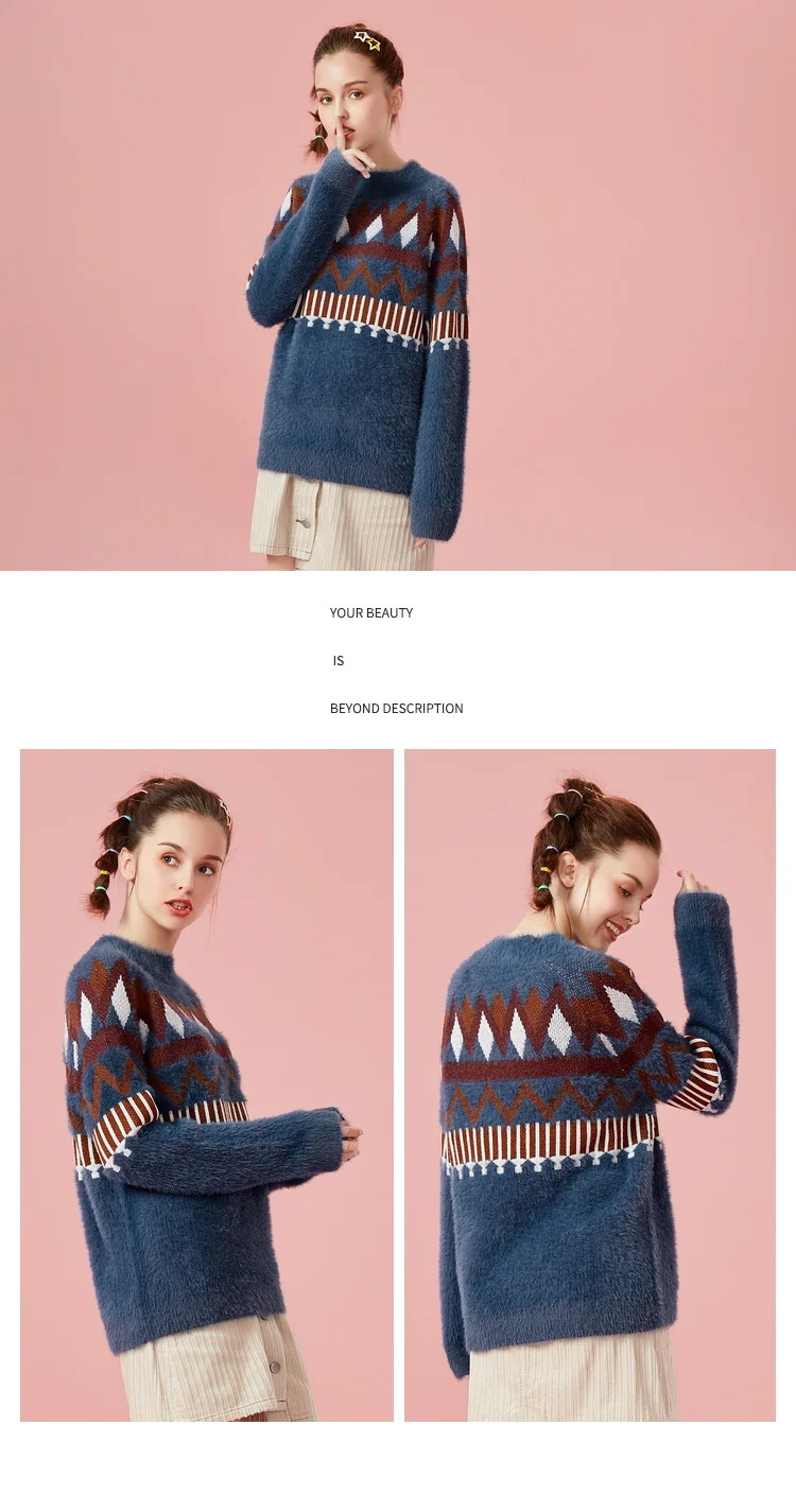 Home / Fashion / Sweatshirt and Hoodie / FREE SHIPPING Women Fair Isle Fluffy Jacquard-knit Sweater Pullover Sweater Ribbing at Crewneck Cuff and Hem in Cozy Style for Winter JKP2242