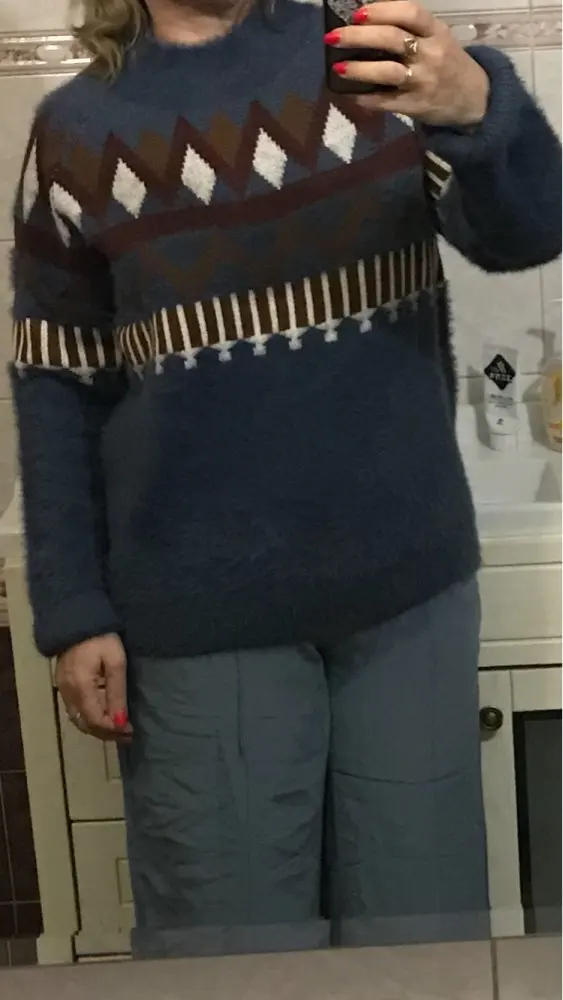 Chic sweater, great quality! Fluffy, tactile very pleasant. At 50 size took xl, sat very well, purely my opinion, it will sit well to about 54 size, since it is oversize. Purchase is happy! Shipping three weeks, track tracked to post office. Shop thank you!