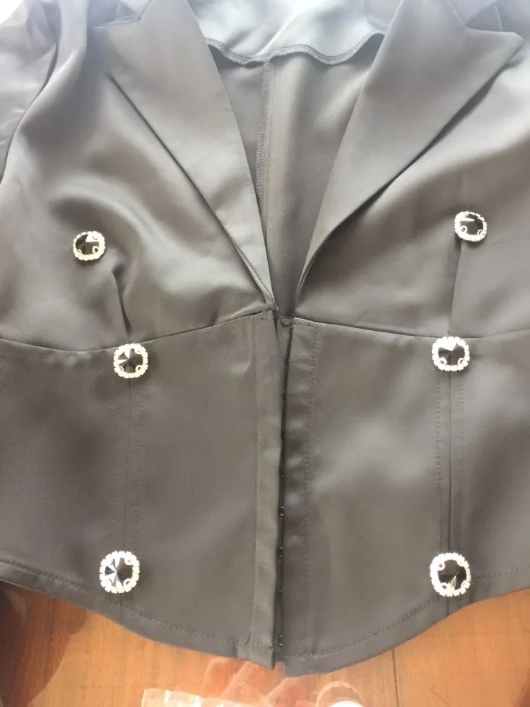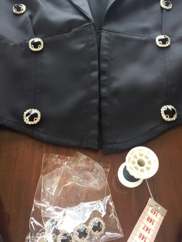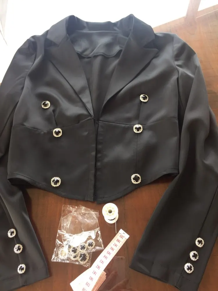 I asked for a size more than mine, to make me a jacket function, if you order your size you will fit more like a very tight top or blouse. The ornaments i added them and this is the result. The jacket is very thin and without lining, but very well made, according to the price. Watch your planchat! Backwards and patiently. Happy with the purchase