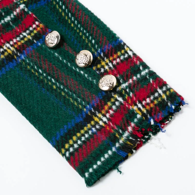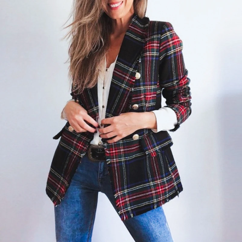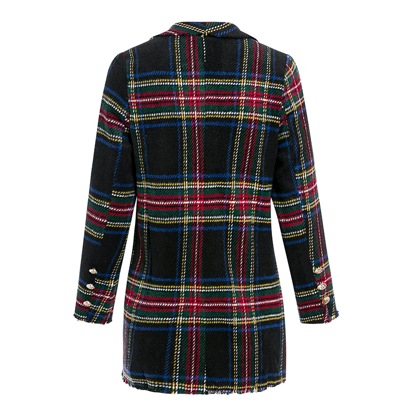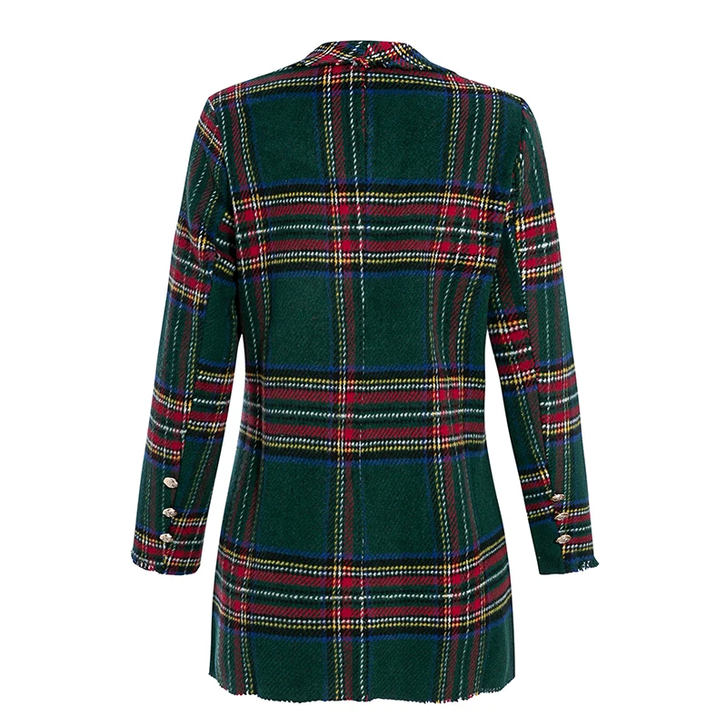 FREE SHIPPING Women Fashion Tweed Plaid Blazer Autumn Winter Female High Street Long Sleeves Jackets Mujer Business Chic Coats JKP2581