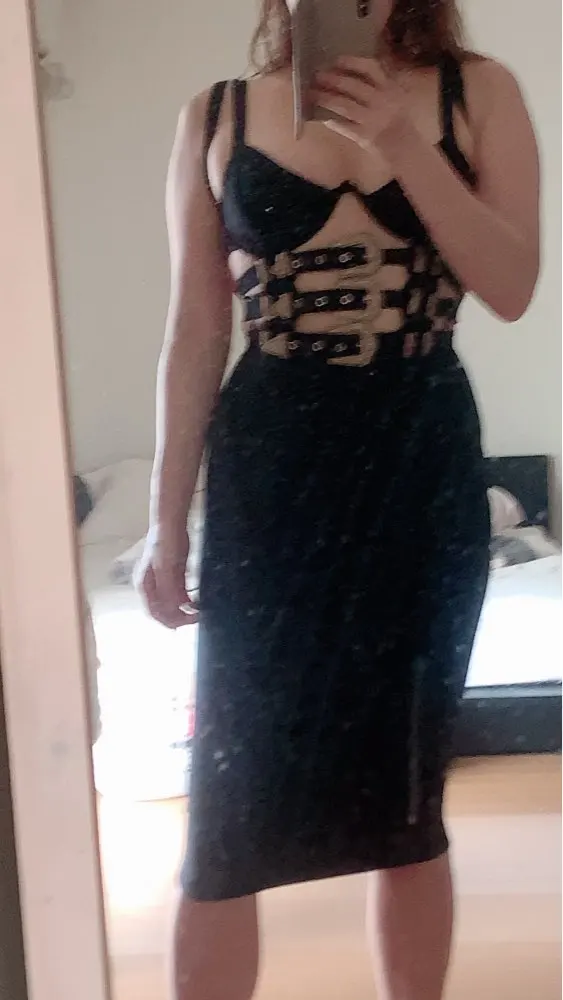 So in love with this dress! The material is super stretchy and sewn perfectly! It’s very true to size so get your exact size! I ordered a large at first just to be safe but I asked the store to switch to a medium and I am glad I did! Can’t wait to wear it!