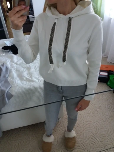 Good quality, sewing. Measurements correspond to the size table. Deep, comfortable hood. Liked the cuffs on the sleeves: wide and fit snugly. Immediately after unpacking stretched on a delicate, because there was a noticeable smell of glue. After washing did not sit down, did not roll down, the decor is all in place. The length of the height of 1,58 barely... Personally, i would like to be longer, but that is, that is, the length when ordering saw. So wear more comfortable with high waist.
