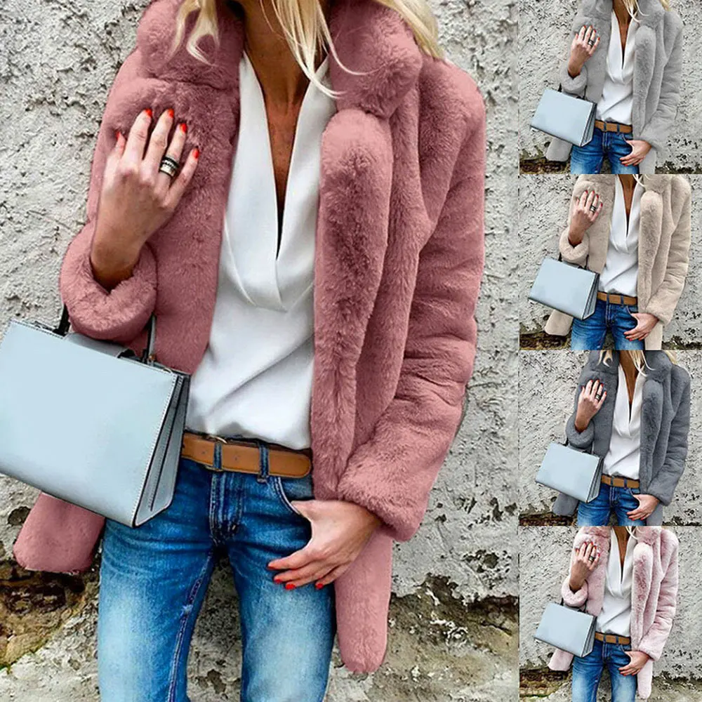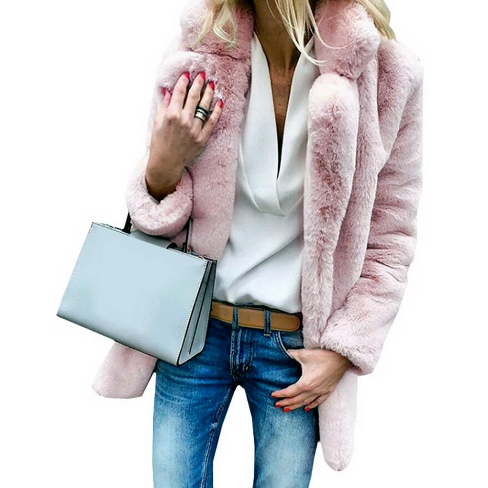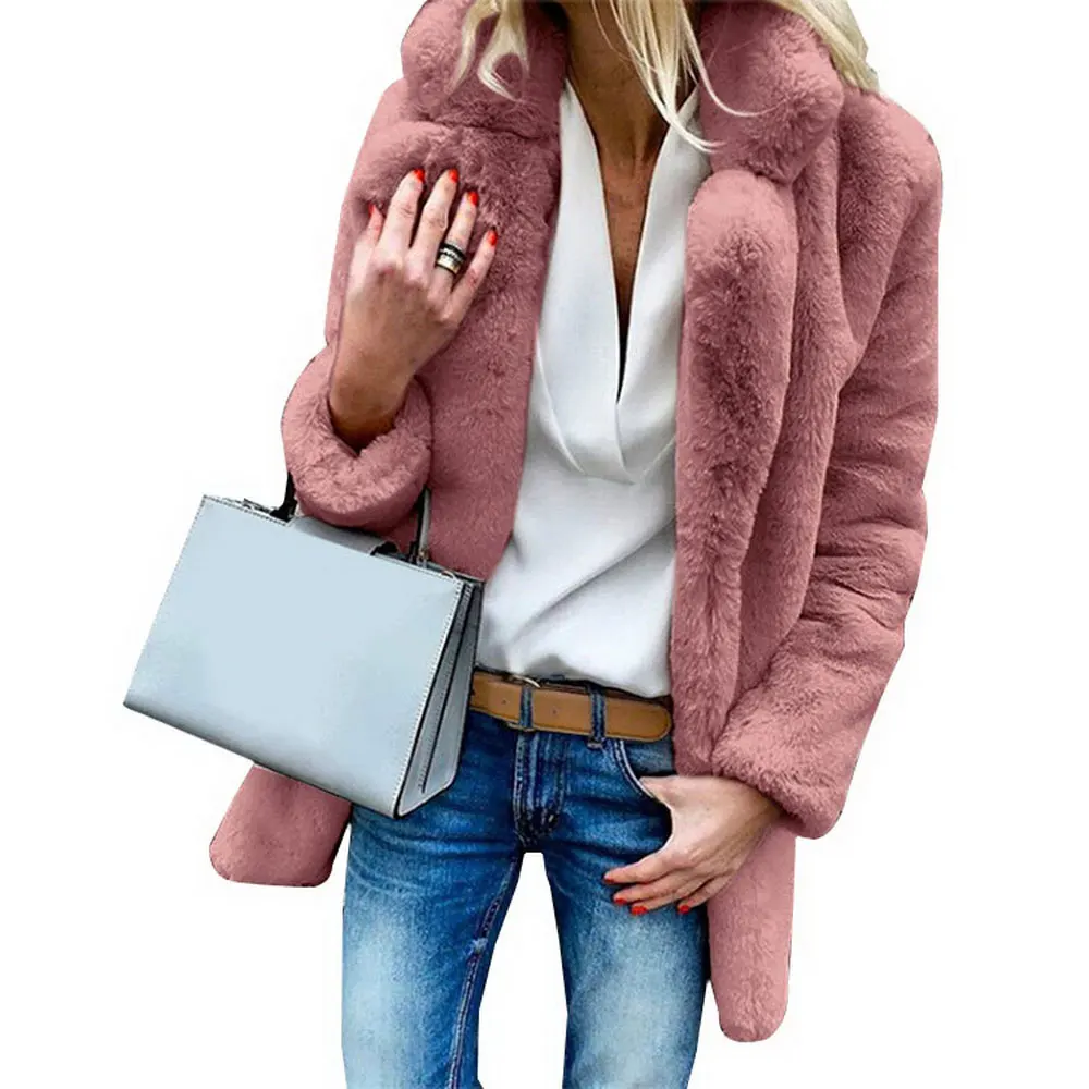 FREE SHIPPING Women Faux Fur Coats Winter Solid Fashion Open Point Outwear Female Luxury Long Sleeve Warm Thick Fluffy Jacket Coat JKP2793