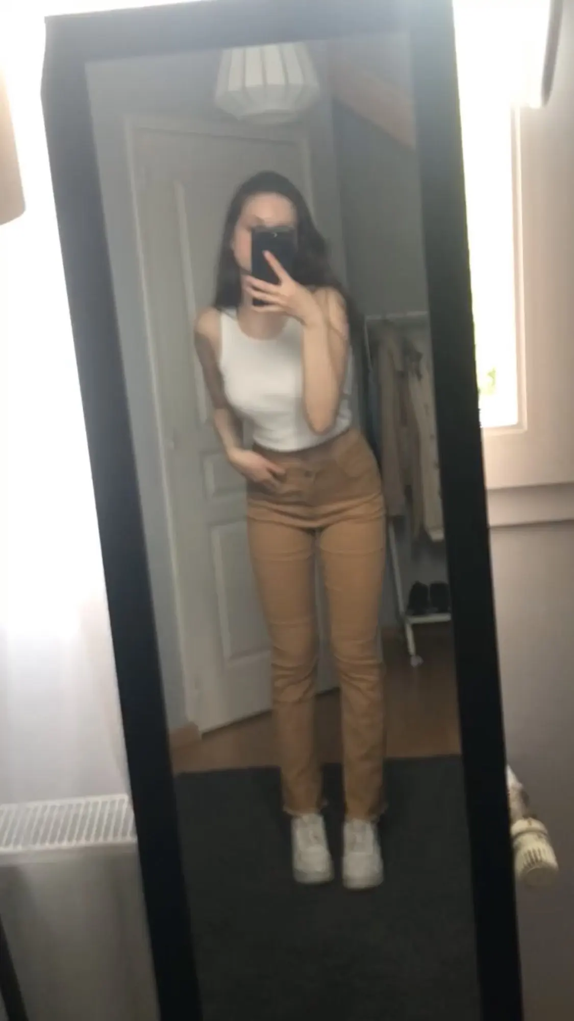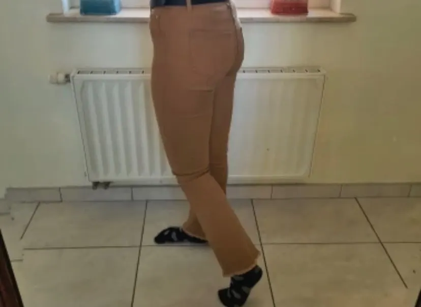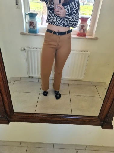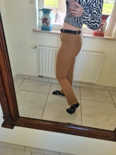 Identical to the photo, stretch material and beautiful color. I'm 1m60 for once I must not cut a jeans to wear it!