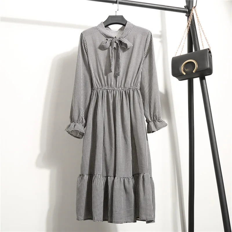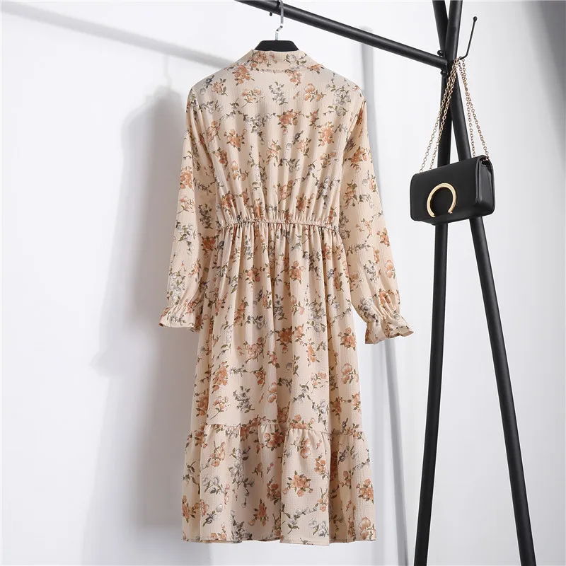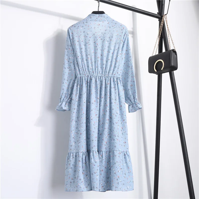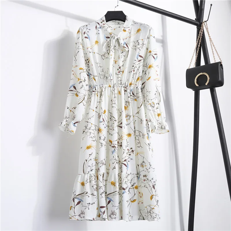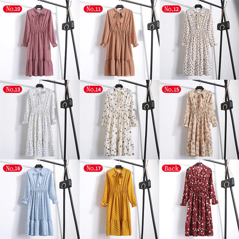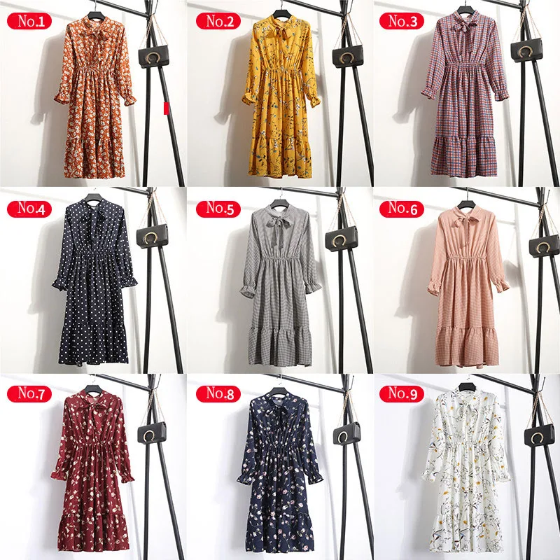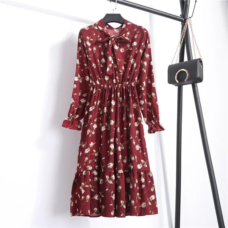 FREE SHIPPING Women floral Long Bowknot Dresses Long Sleeve JKP1394