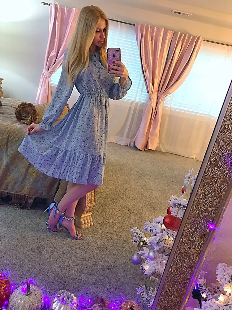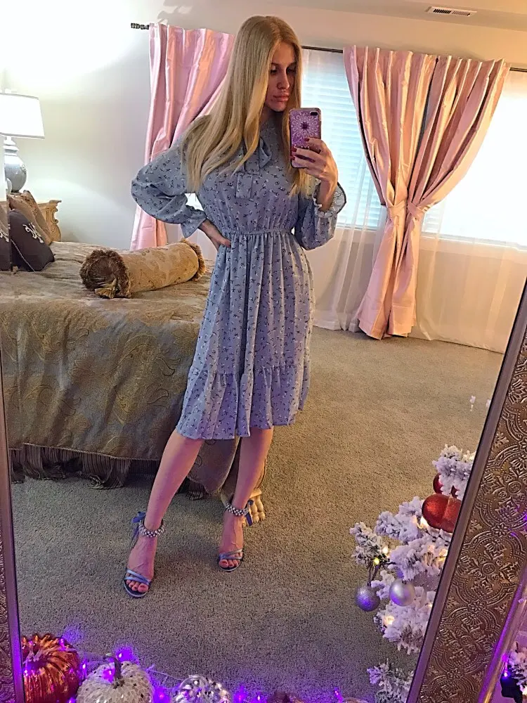 It is a beautiful blue dress for a blonde. I love it! Can not wait to wear it in summer.