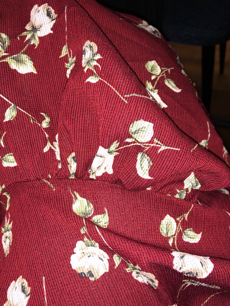 Fajna sukienka, lekka, ładna, fajny wzór. Polecam. XL jest na mnie dobre na styk. Na co dzień noszę 42. I jeszcze super zaleta—materiał nie wymaga prasownia