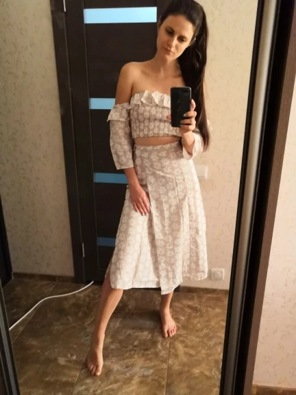 Everything is super, fit in size, looks cute, as in the photo. The material is not very, but it was indicated in the description. It came in about a month.