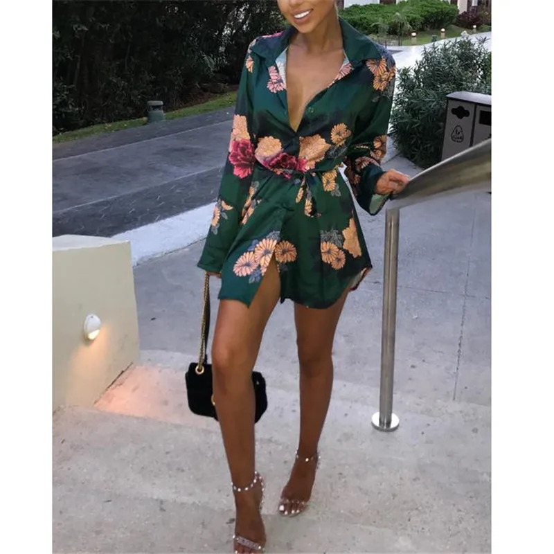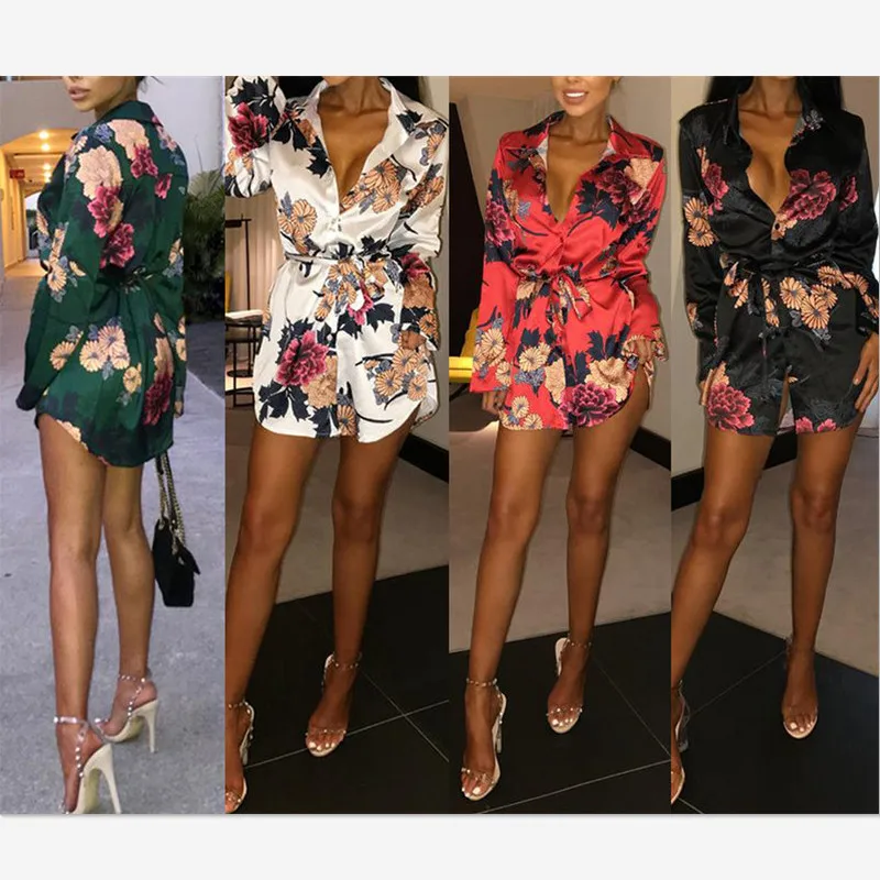 FREE SHIPPING Women Floral Satin Silk Long Sleeve Mini Dress JKP3315