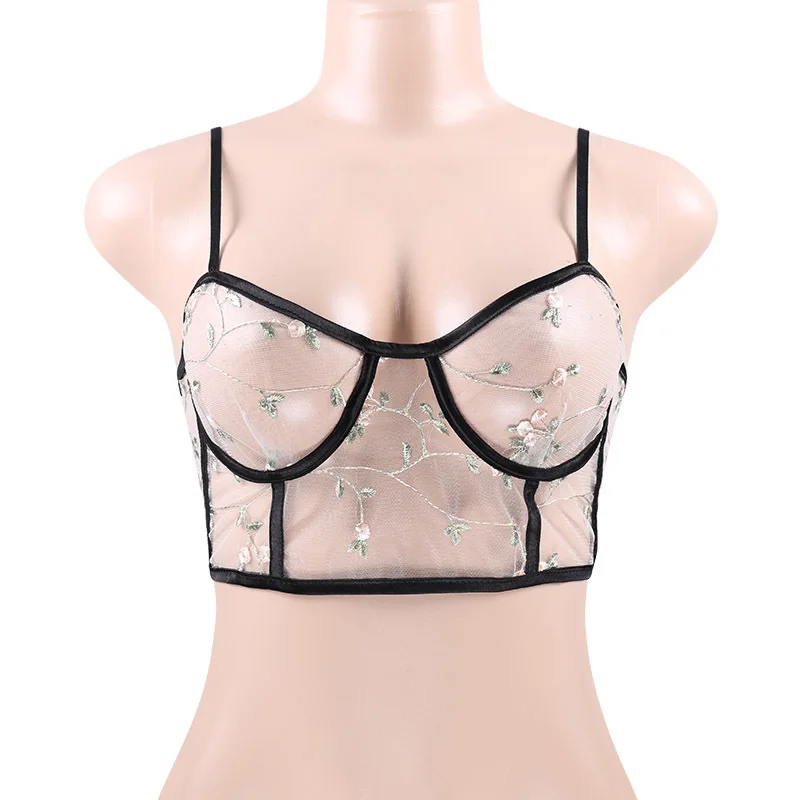 FREE SHIPPING Women Flowers Embroidery Zipper Camis Top JKP1231