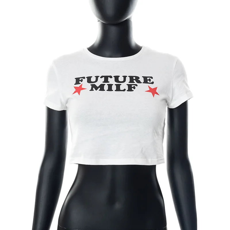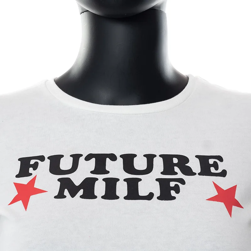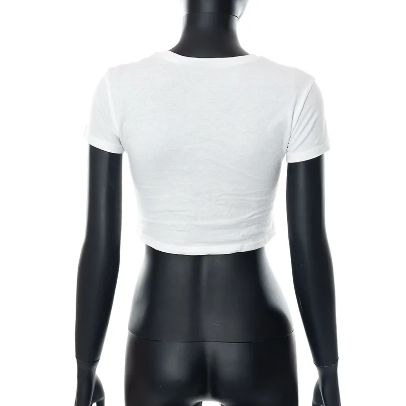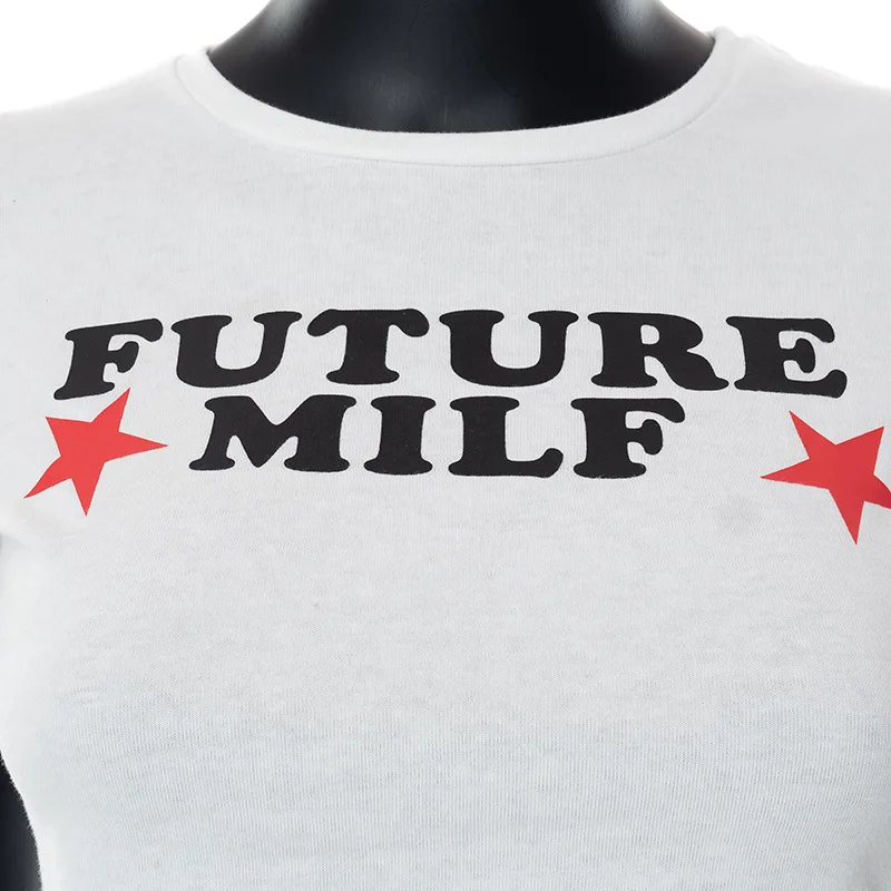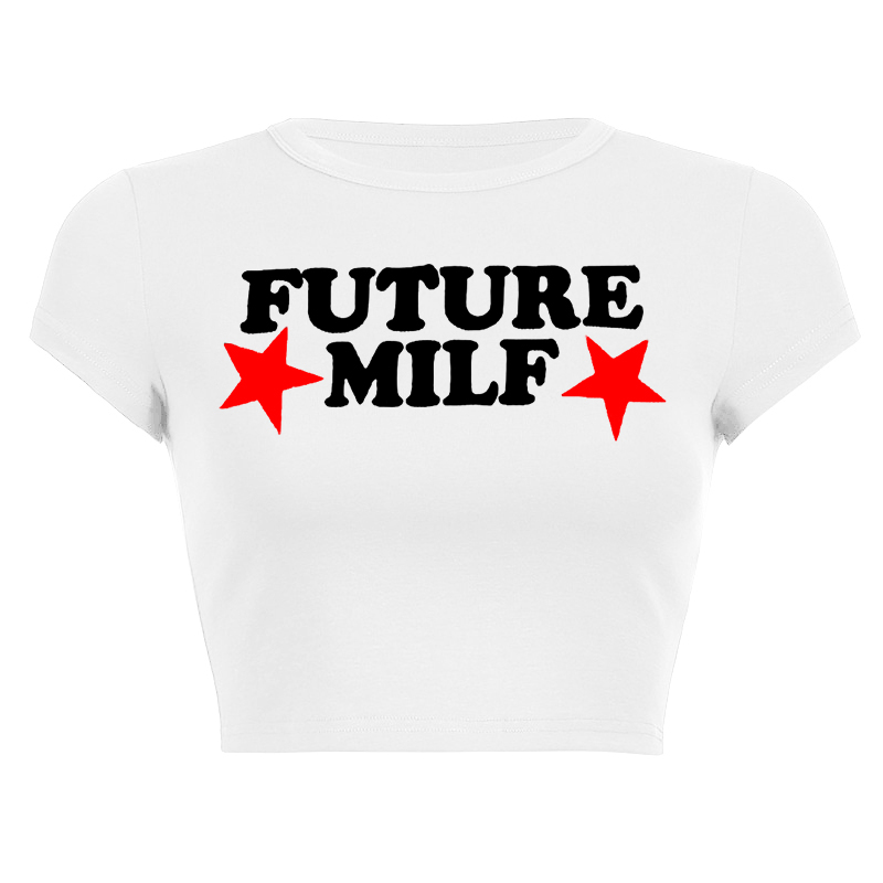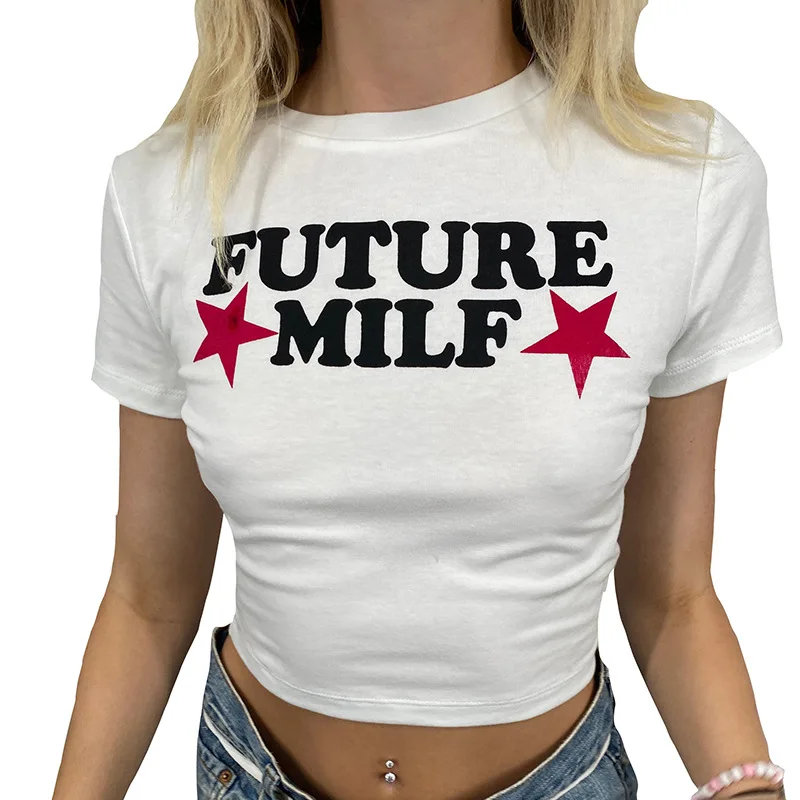 FREE SHIPPING Women Funny Cropped Shirt Retro Alphabet Stars Casual Print JKP6132