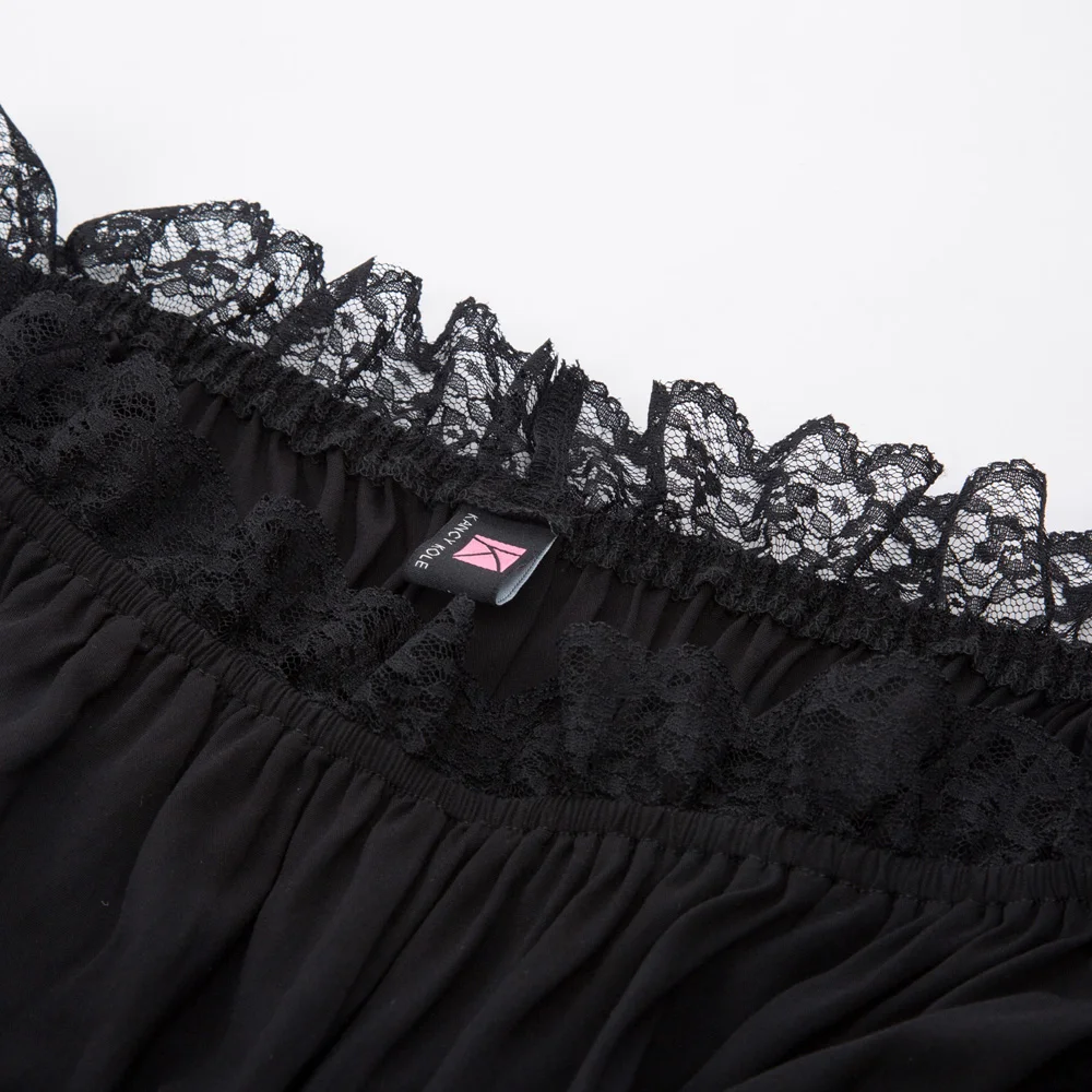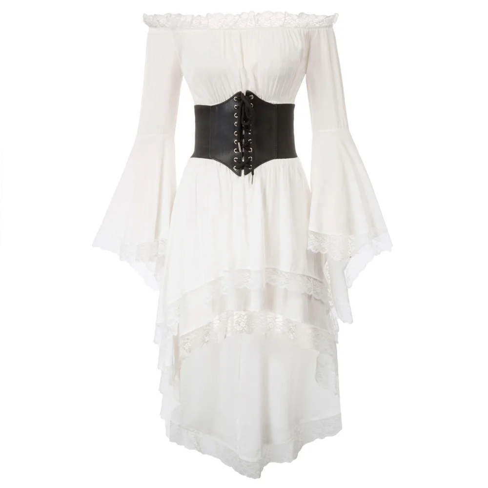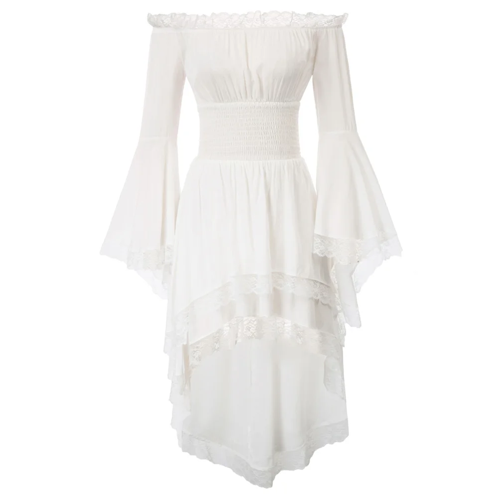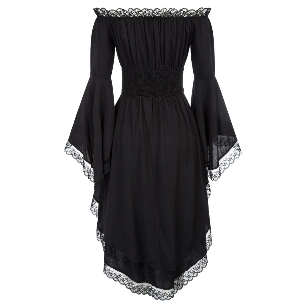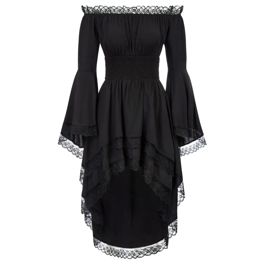 FREE SHIPPING Women gothic dress vintage elegant Dual-Layer High-Low Dress Comfy Long Sleeve Off Shoulder Smocked Waist dresses party clubwear JKP2506