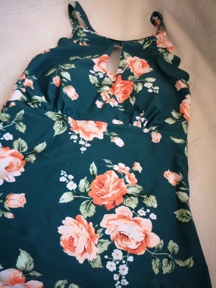 The swimsuit is the same as in the photo. The fabric is fine, plus it has another forum below to prevent it from being transparent. What i like best is that you can regulate the suspenders and the bra cups can be pulled out. I took size s and it suits me very well (i have 161 m and weight 49 kg)