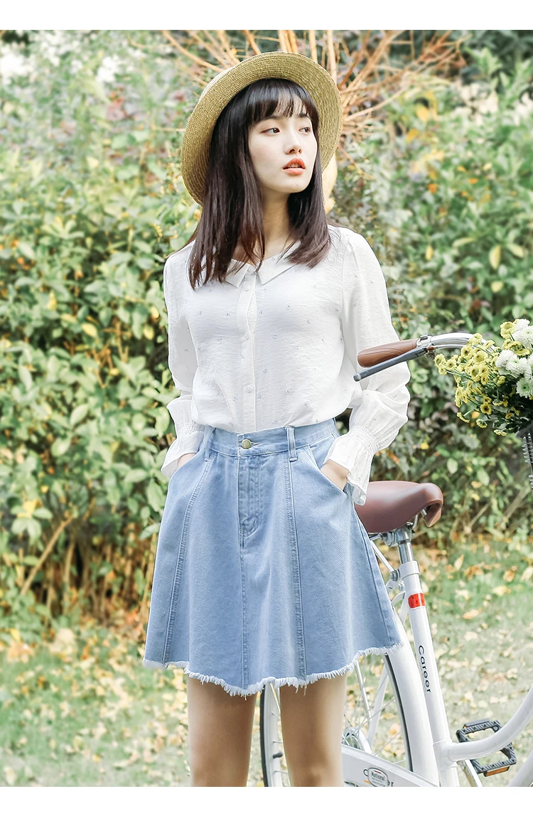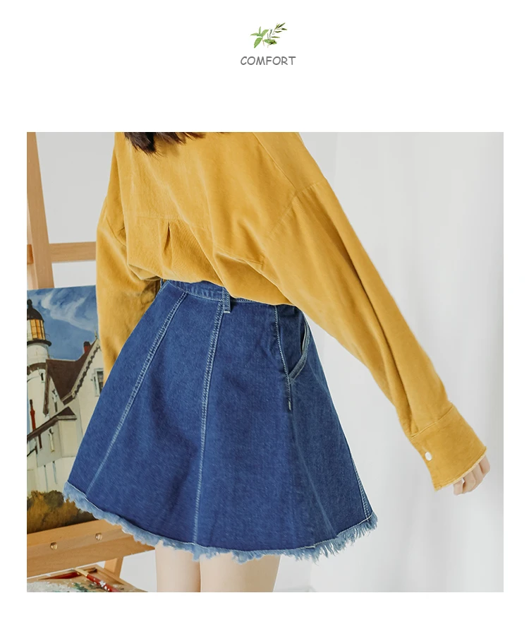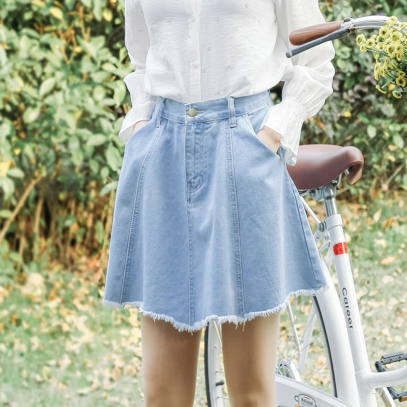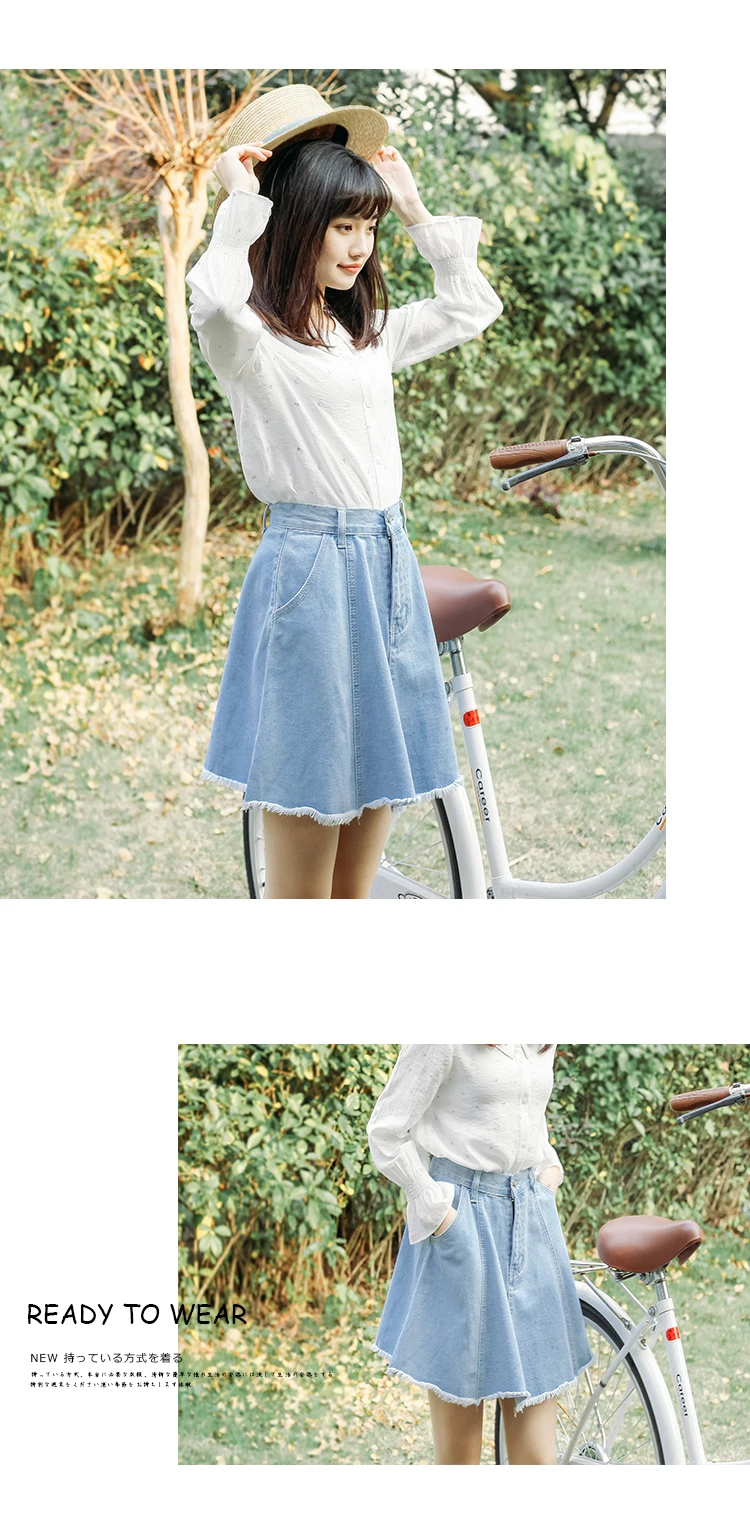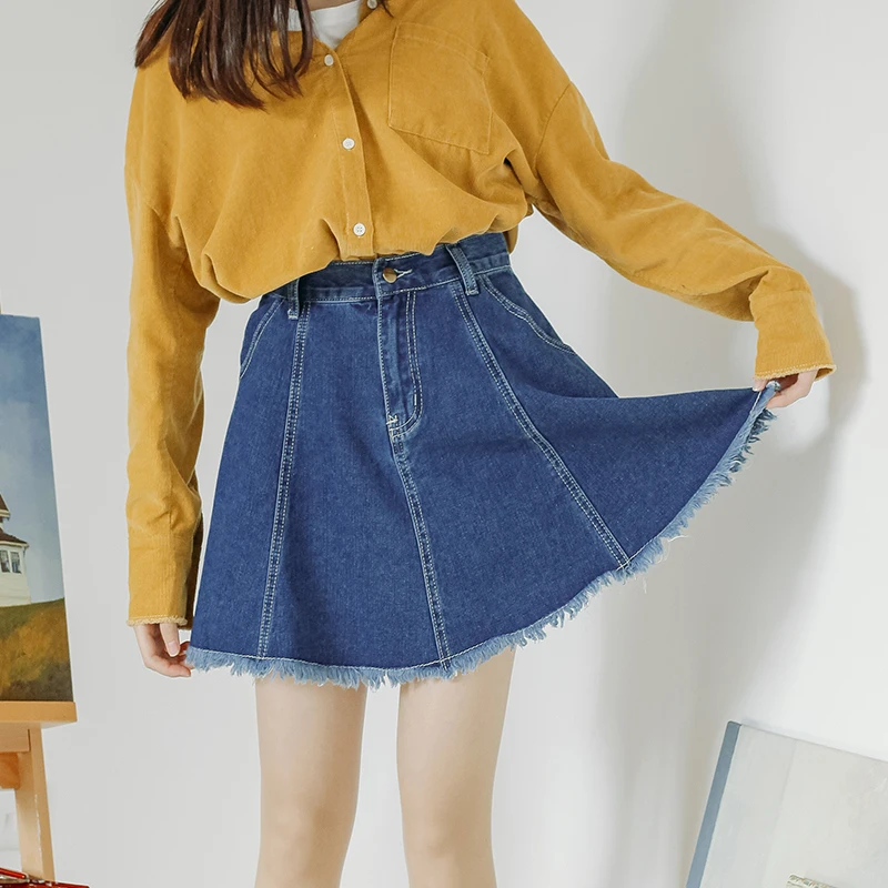 FREE SHIPPING Women High Waist Tassel Wide Leg A-line Jeans Skirts JKP1432