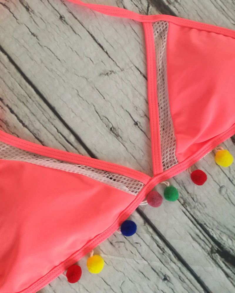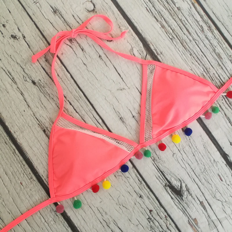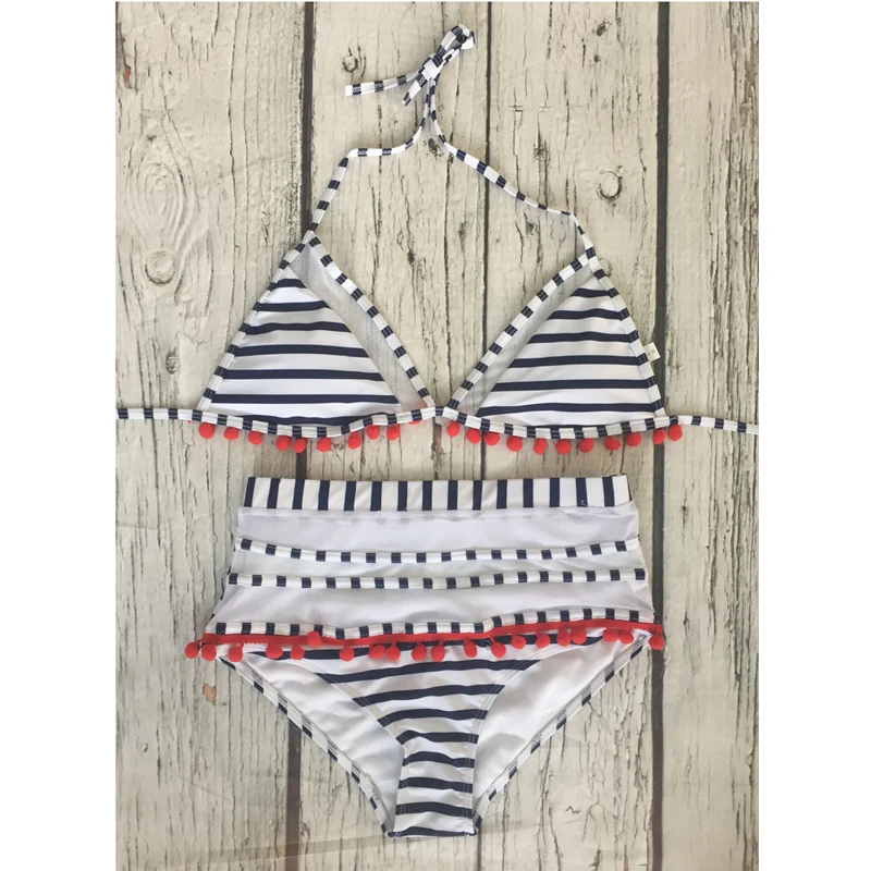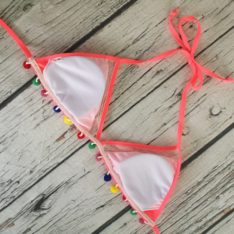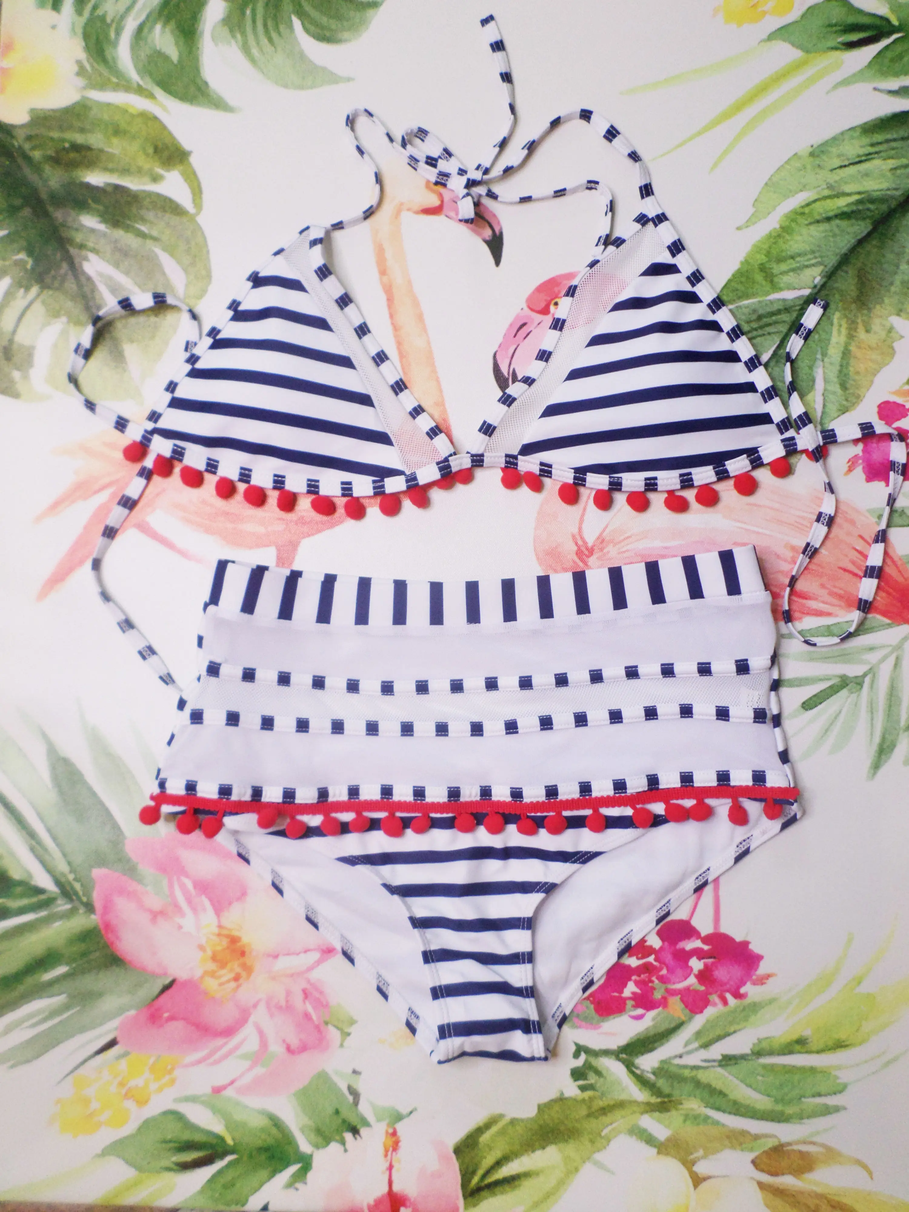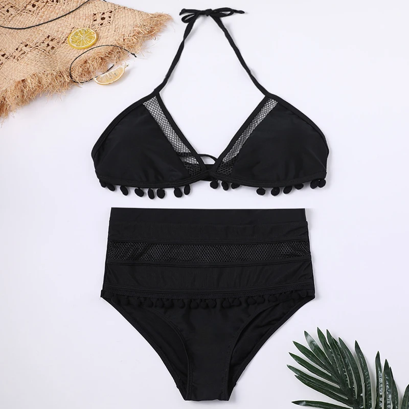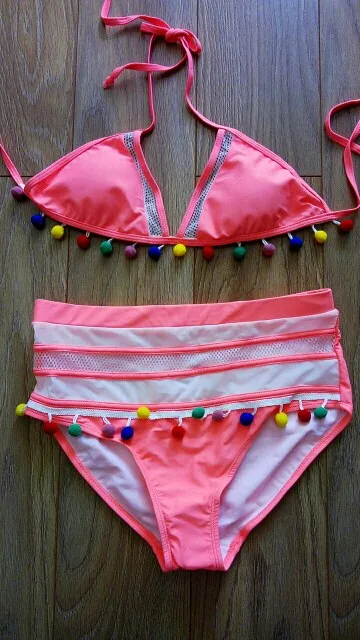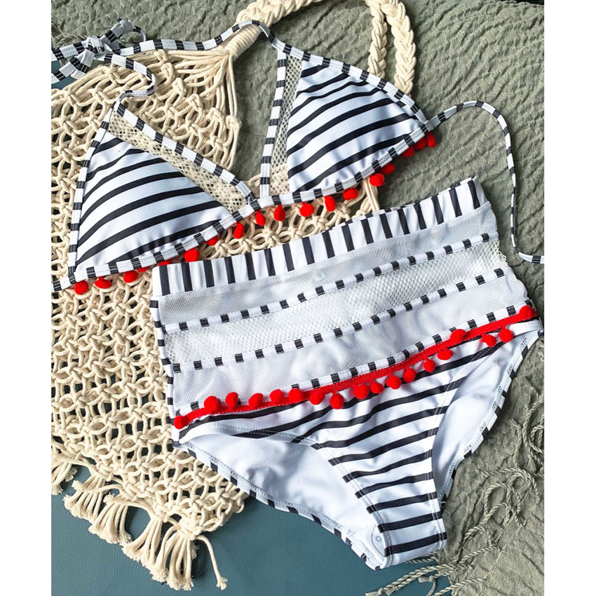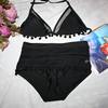 FREE SHIPPING Women High Waist Tassels Halter Push Up Bathing Suit JKP3152