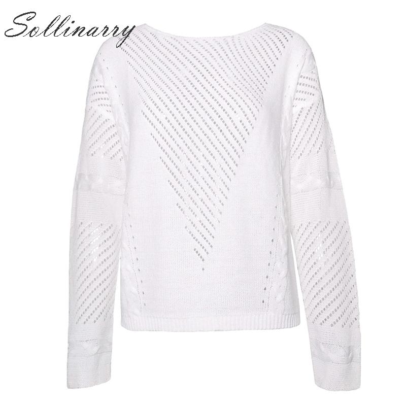 FREE SHIPPING Women Hollow Out Casual Loose O Neck Knitted Sweaters JKP3690