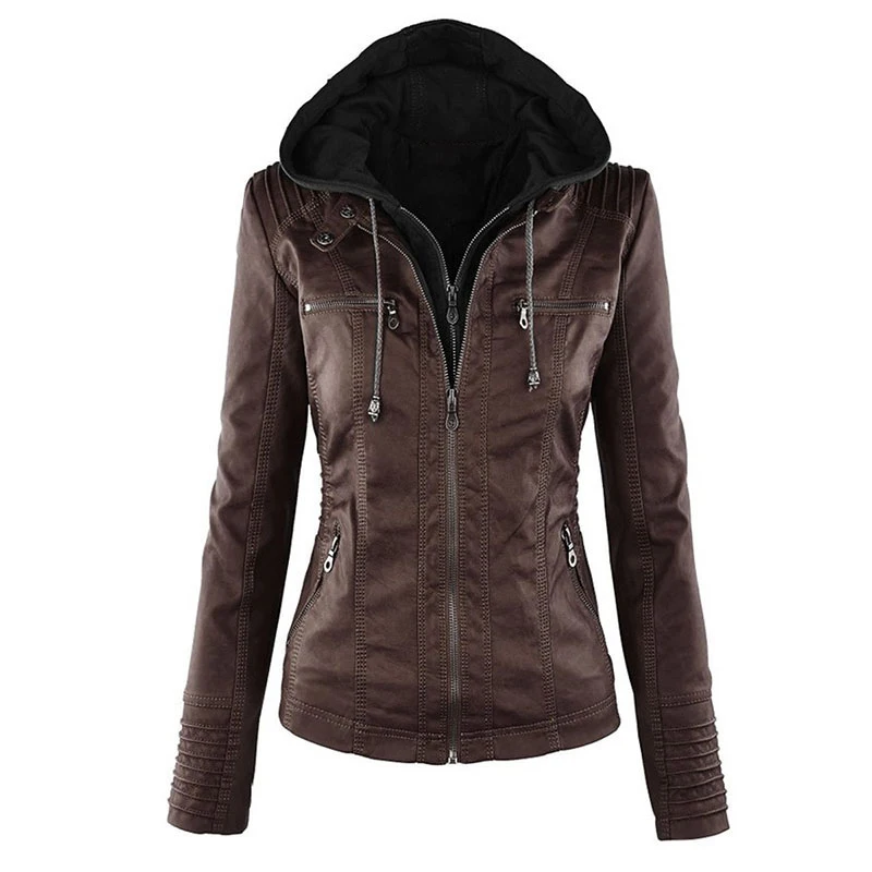 Gothic faux leather Jacket Women hoodies Winter Autumn Motorcycle Jacket Black Outerwear faux leather PU Jacket 2018 Coat HOT