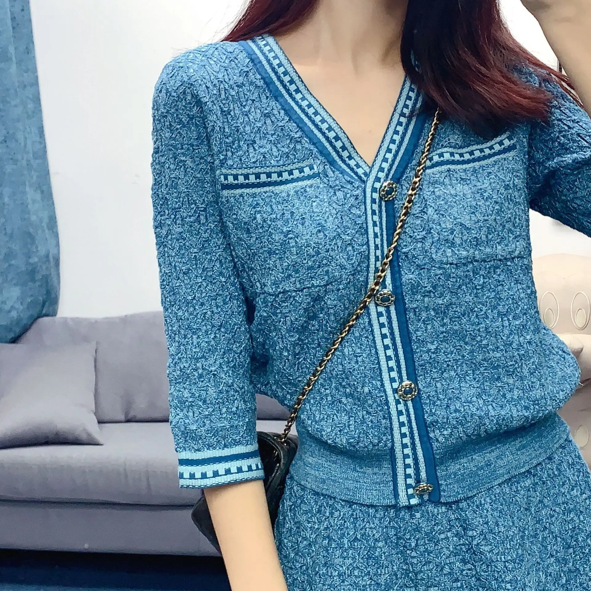 FREE SHIPPING Women Knit Sweater And Skirt Matching Sets JKP4858