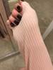 The material is thin enough, a little shines through. Appearance and color fully match the photo. My advice: take a smaller size than it turns out on the store's table-the material stretches well. On height 165 cm. Pants and cardigan will have to be cut.