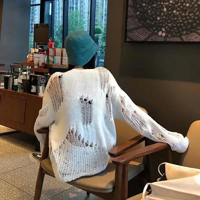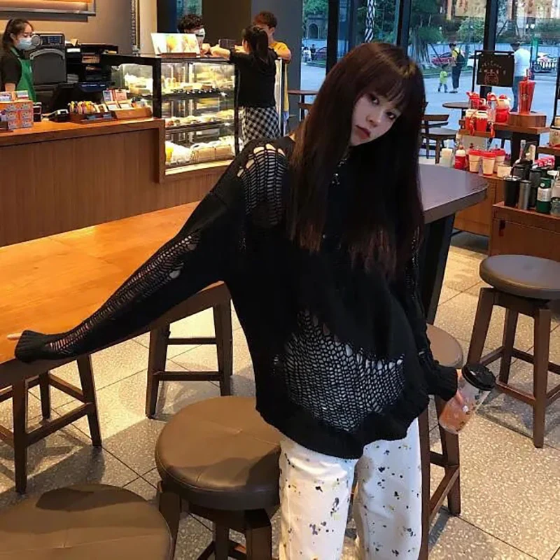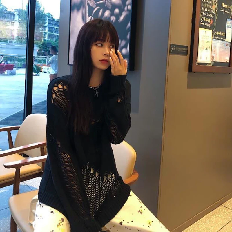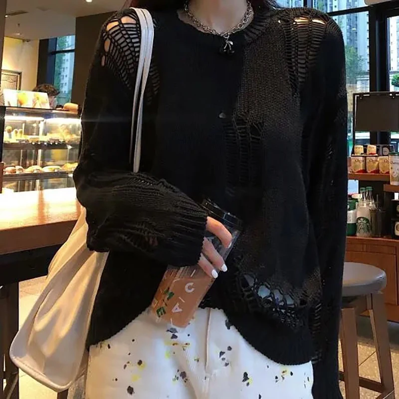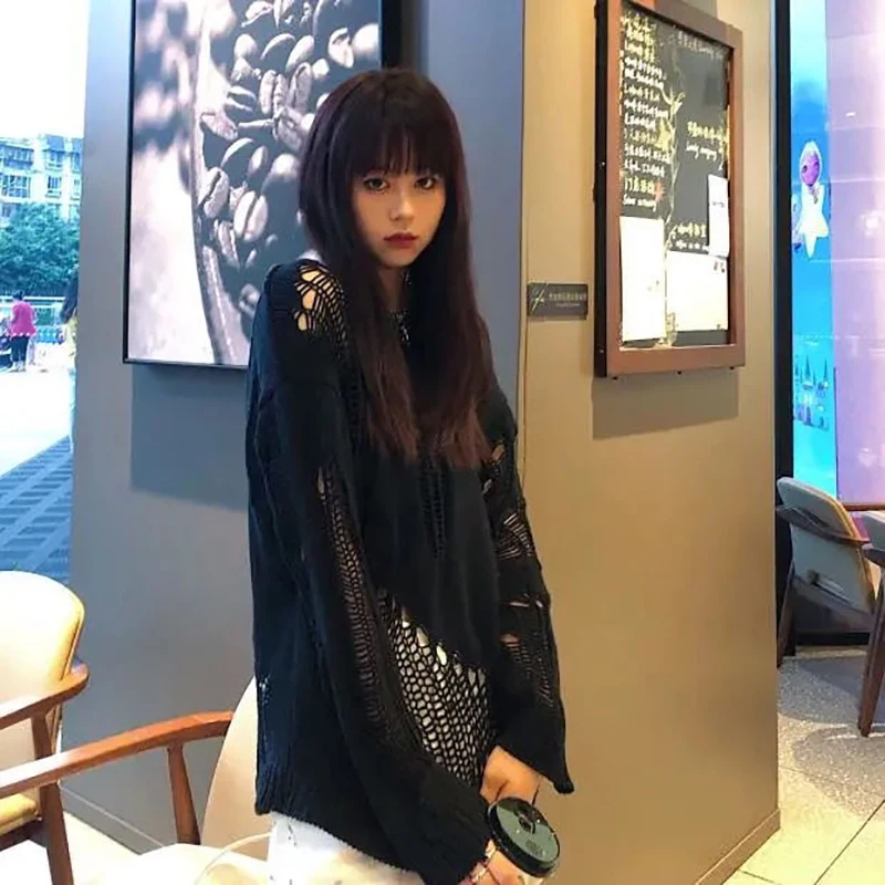 jumper,loose,plus size,hole,hollow out