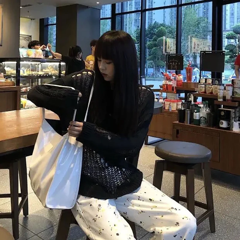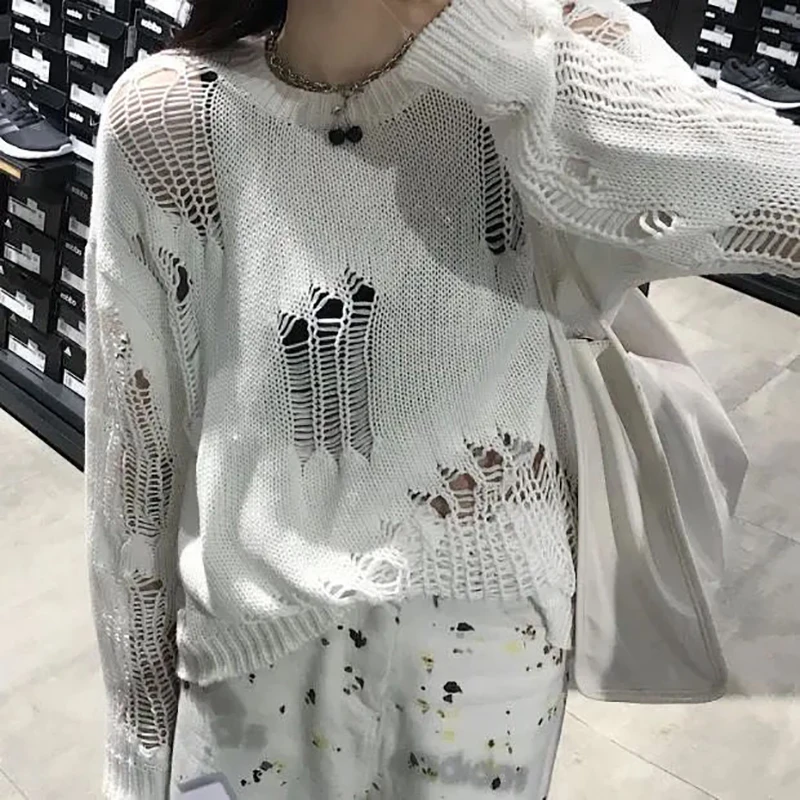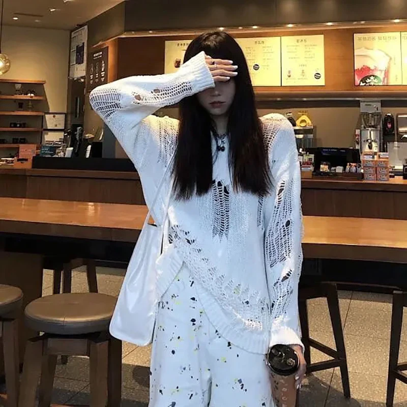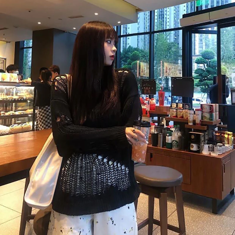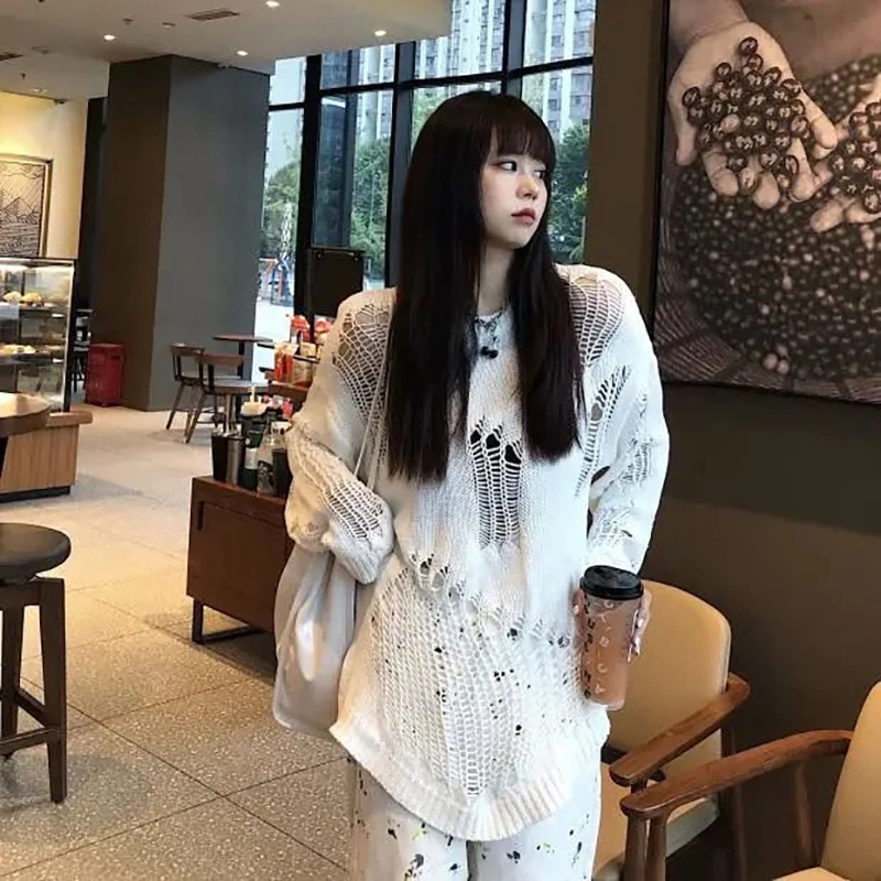 jumper,loose,plus size,hole,hollow out