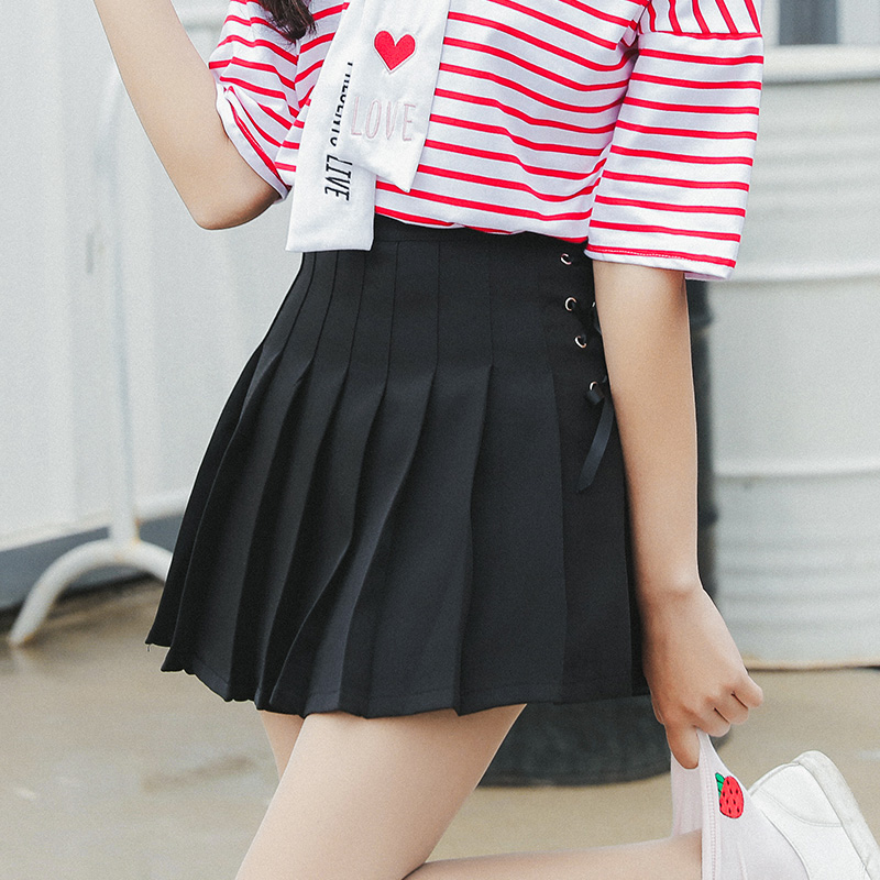 FREE SHIPPING Women Korean Harajuku Bow Tie Vintage Pleated Skirt JKP1759