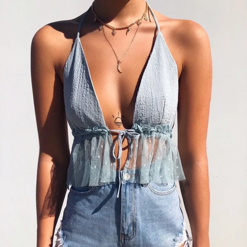 FREE SHIPPING Women Lace Camis Sexy Halter Crop Tops JKP1233