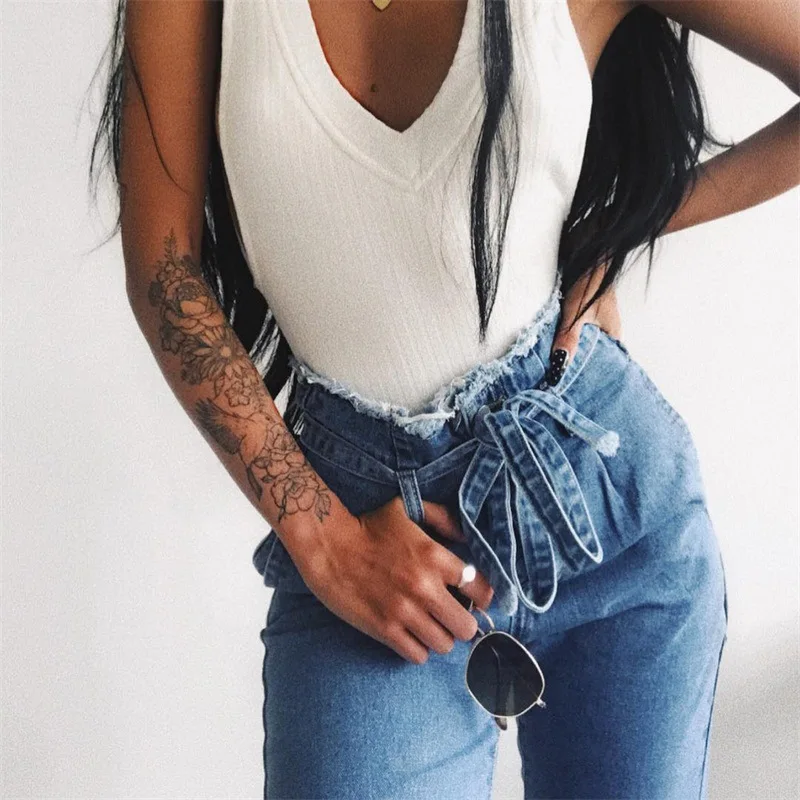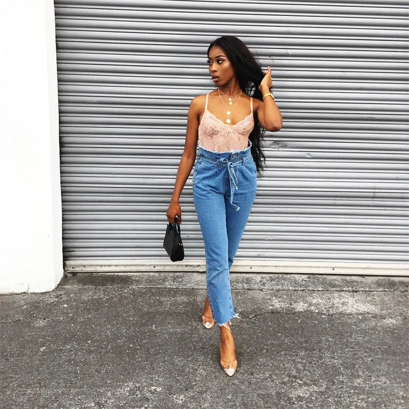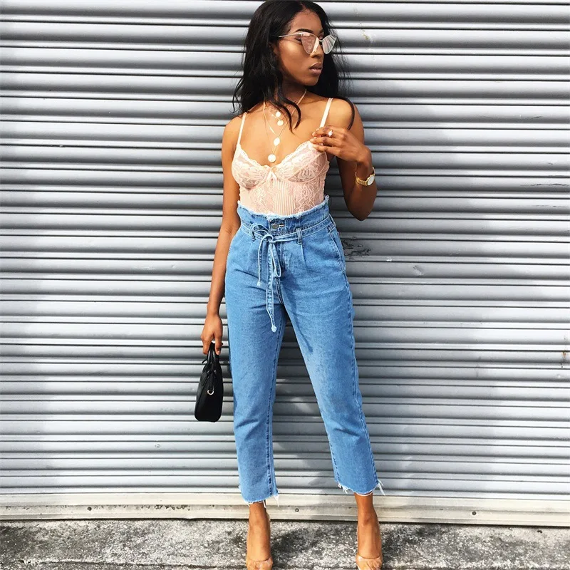 FREE SHIPPING !! Women Lace Up Denim Skinny Ripped Jeans JKP969