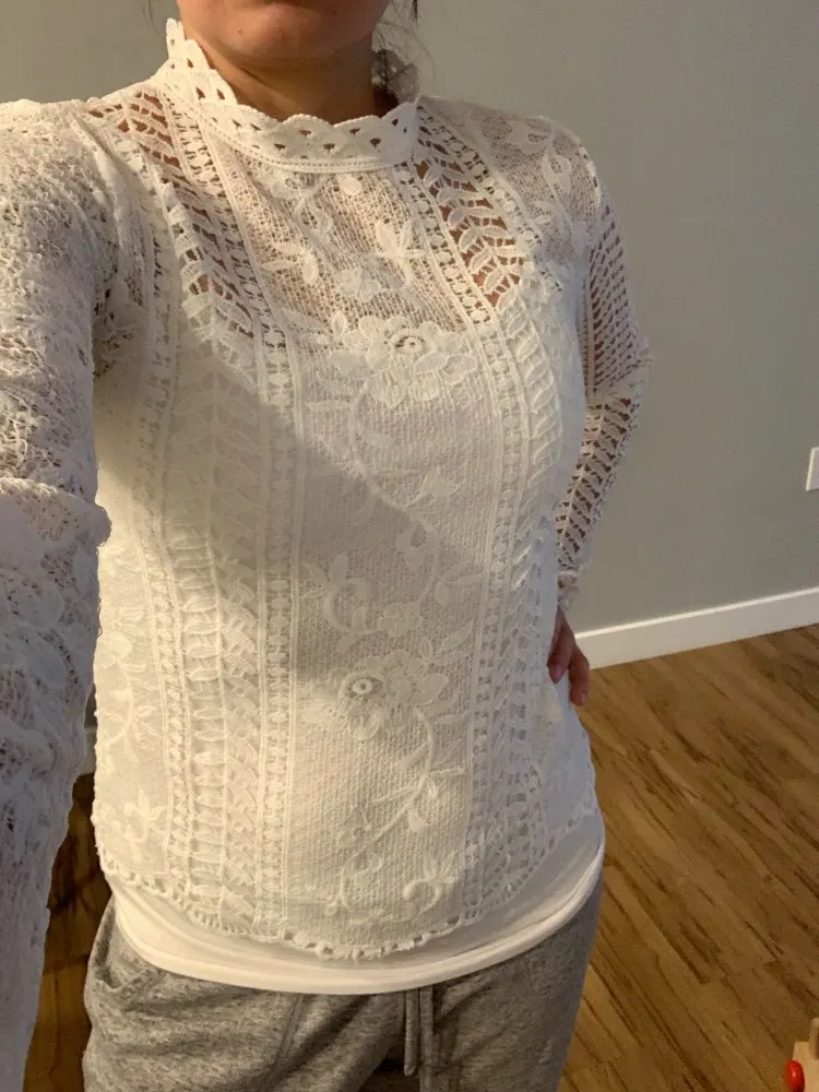FREE SHIPPING women ladies blouse long sleeve white Lace hollow turtleneck blouse Top Summer Blouses Cap Elegant Blouse for female JKP2869