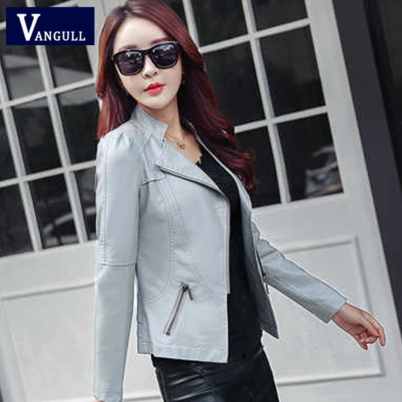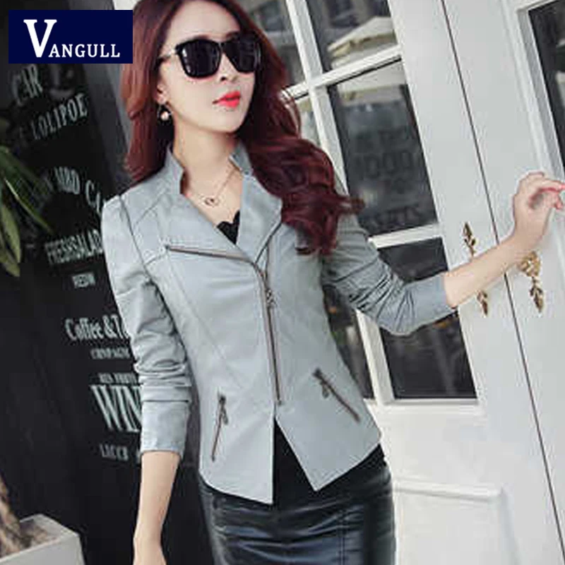FREE SHIPPING Women Leather Jacket Long Sleeve Slim Short PU Faux Leather Coat JKP3416