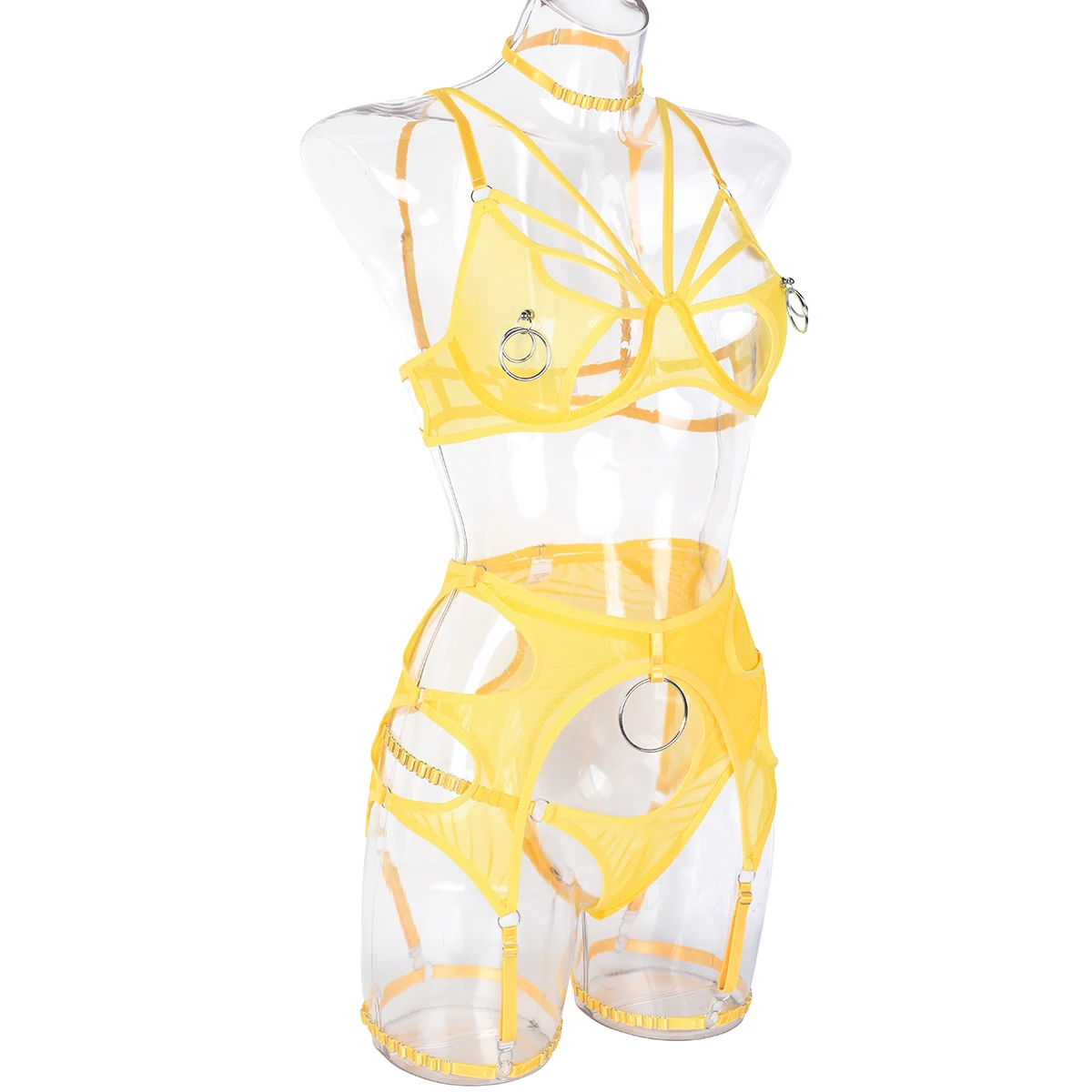 FREE SHIPPING Women Lingerie Lace Cut Out Bra Sets 4 Pieces Set JKP6159
