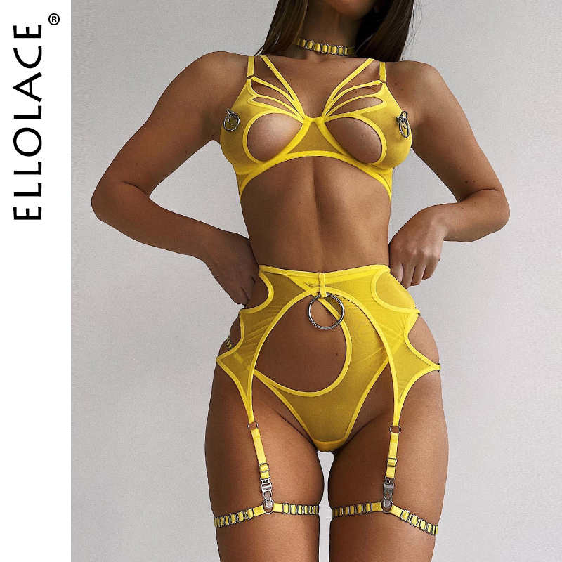 FREE SHIPPING Women Luxury Intimate Lingerie Romantic Outfit Metal Chain Lace 3 Piece Set JKP6145