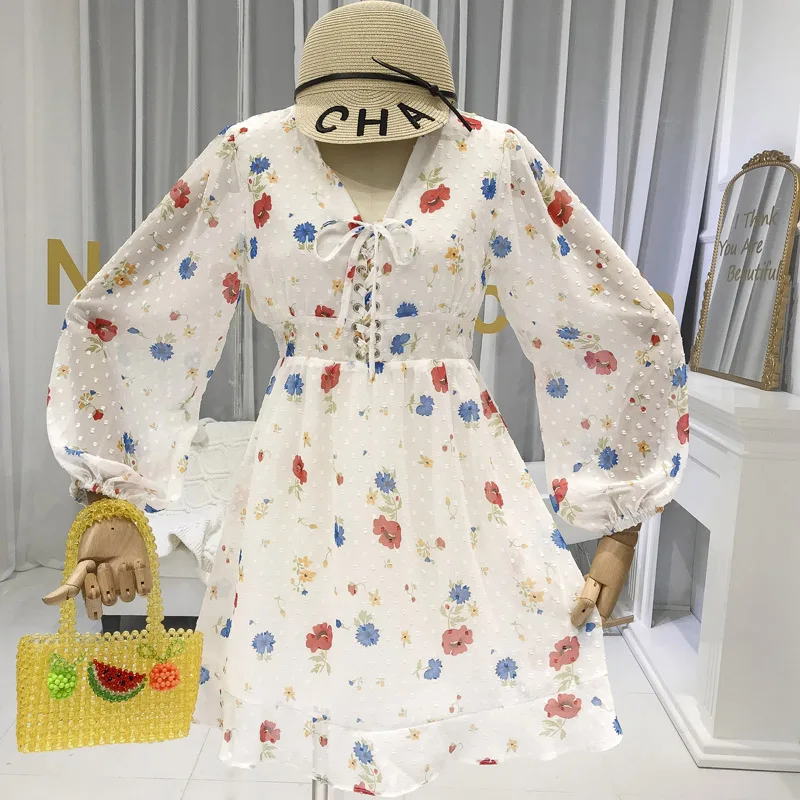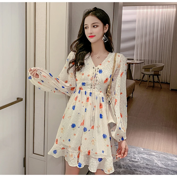 FREE SHIPPING Women Long Sleeve Floral Chiffon Dresses JKP3130