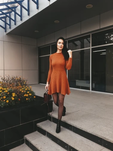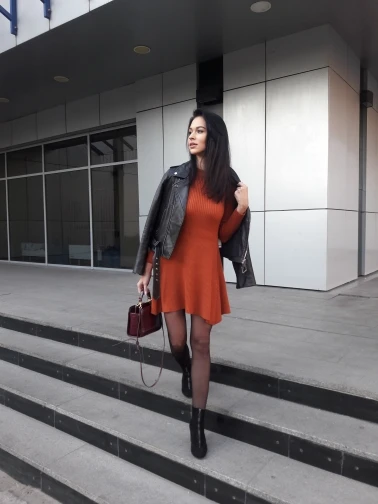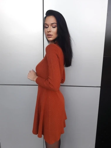 Dress of wonderful quality, tight, pleasant to the body jersey! The color of autumn, juicy and beautiful as a wedge leaf, by the way and the hem is asymmetrical, like the leaf itself on my pairs: 87-64-87, the height of 171 sleeves and the total length-all in place! I love this store for super fast delivery, 10 days to the samara region.