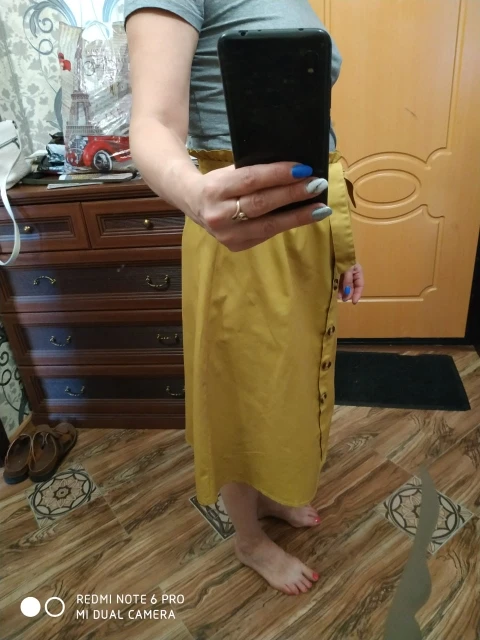 The skirt is excellent! There was a small marriage-an unpainted thread. Opened a dispute, returned some money. On height 170 and weight 56 came perfectly. Waist 70. Closes his knees. Delivery is pretty fast. The green color is slightly darker than in the photo.