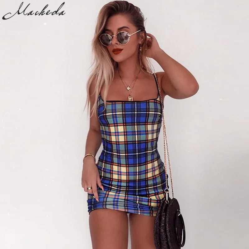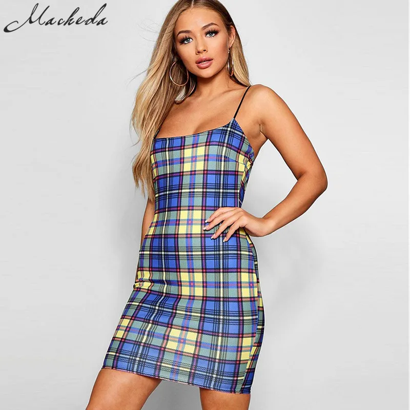 FREE SHIPPING !! Women Midi Halter Sexy Sleeveless Club Party Casual Plaid Dresses JKP1006