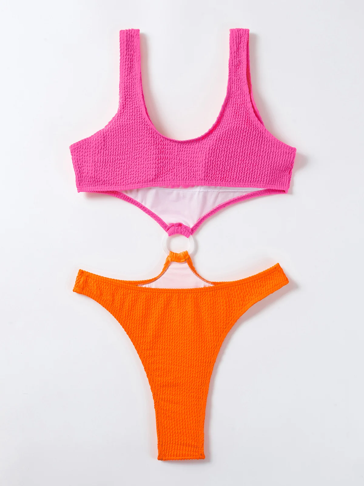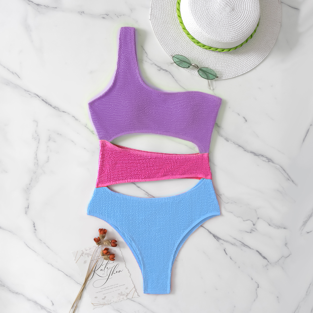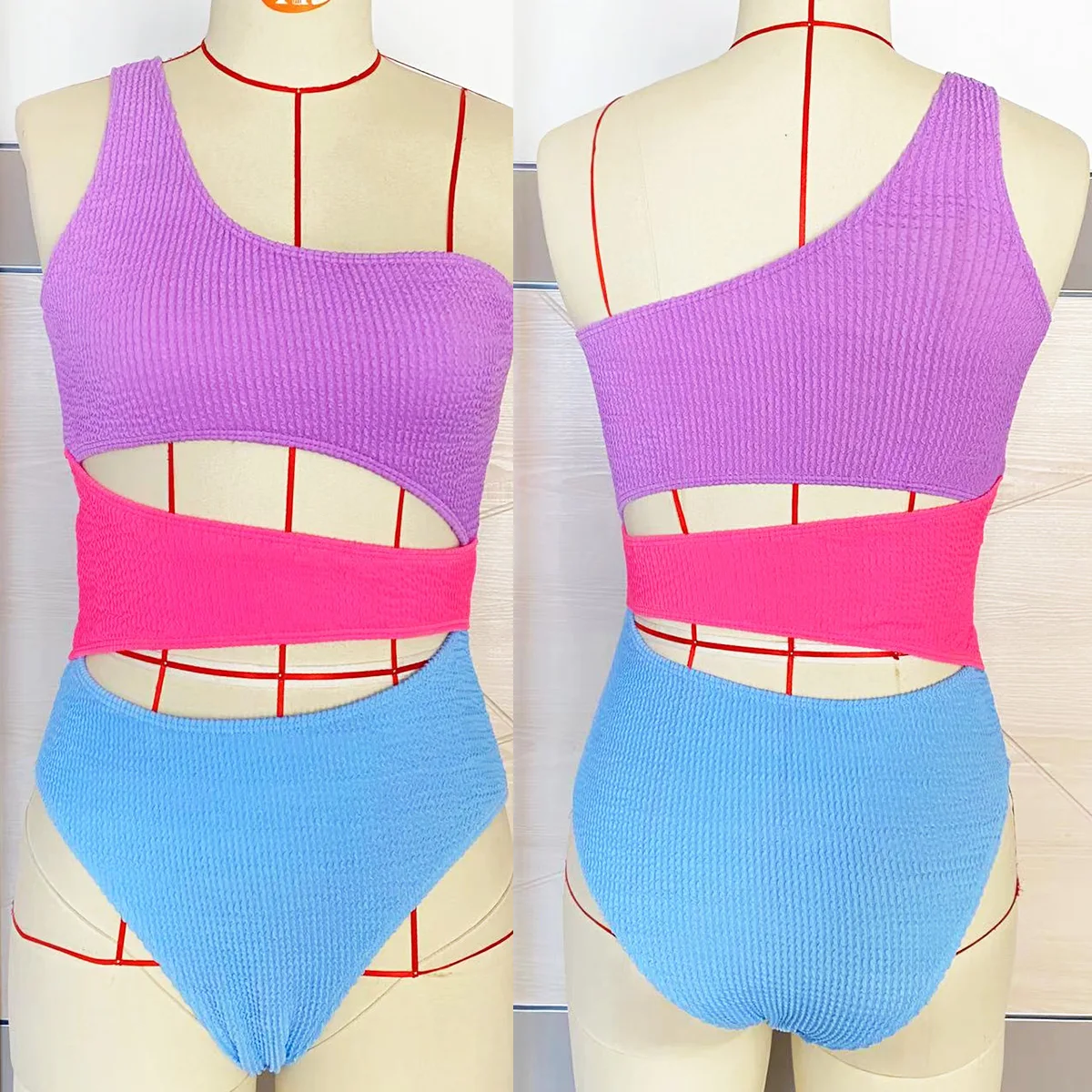 FREE SHIPPING Women New Style Neon Color One Shoulder Monokini Swimsuit JKP6011