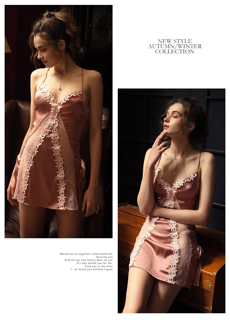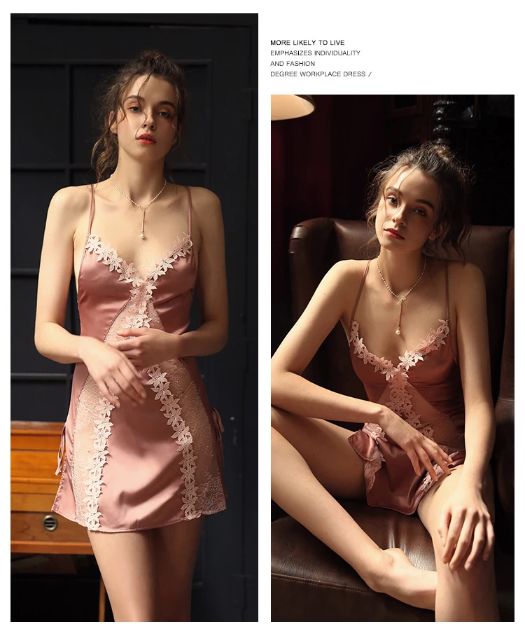 FREE SHIPPING Women Nightgowns Summer Thin Ice Silk Lace Sling Sleeping Dress JKP3622
