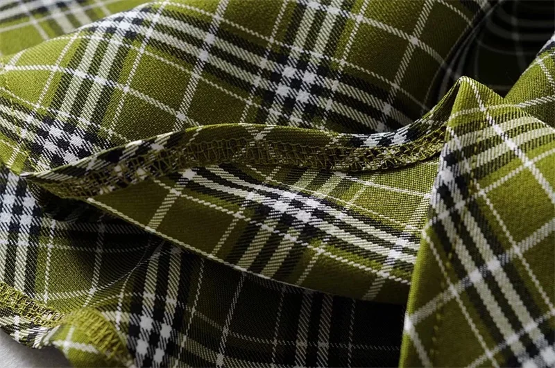 FREE SHIPPING Women Off Shoulder Bardot Mini Dress In Green Check Print Asian Size JKP2510