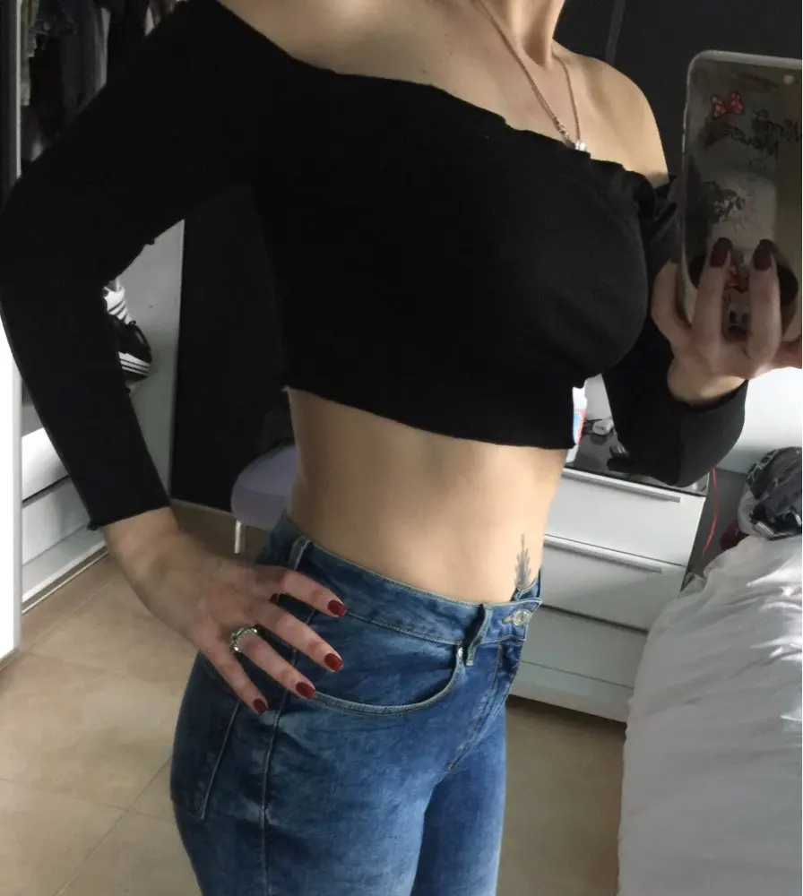 lovely baby. i have said it shorter than would like. only пойдёт худеньких girls or no прикроешь belly. and it is with high pants planting, otherwise not beautiful design. see in any way, скину high and low rise and photo. size s