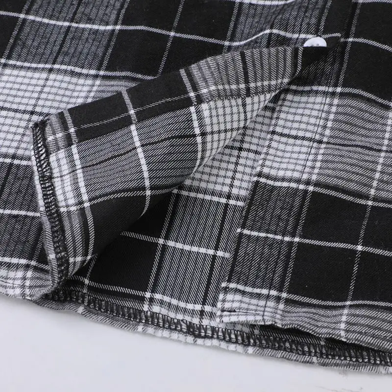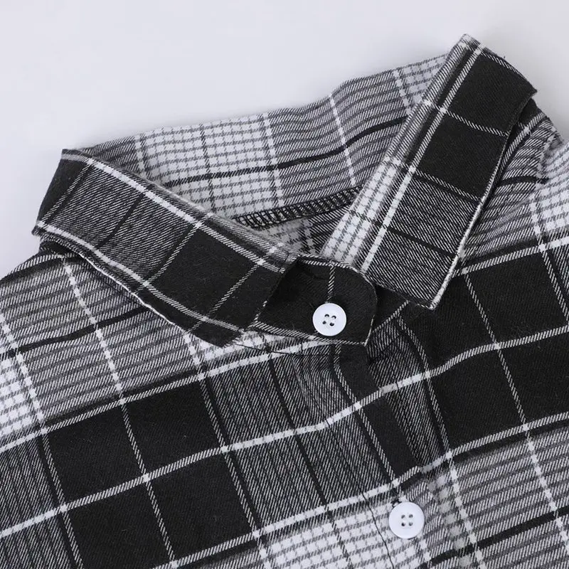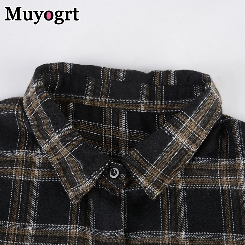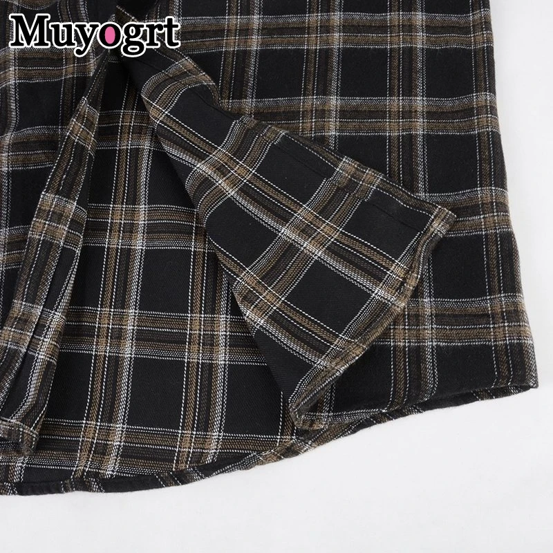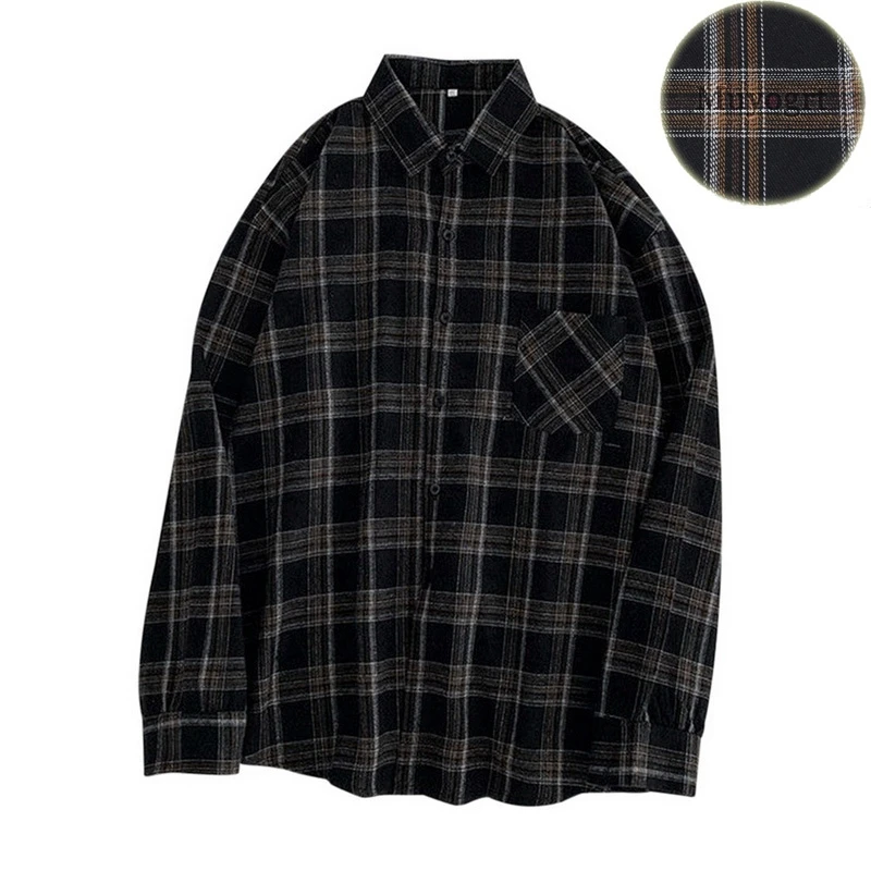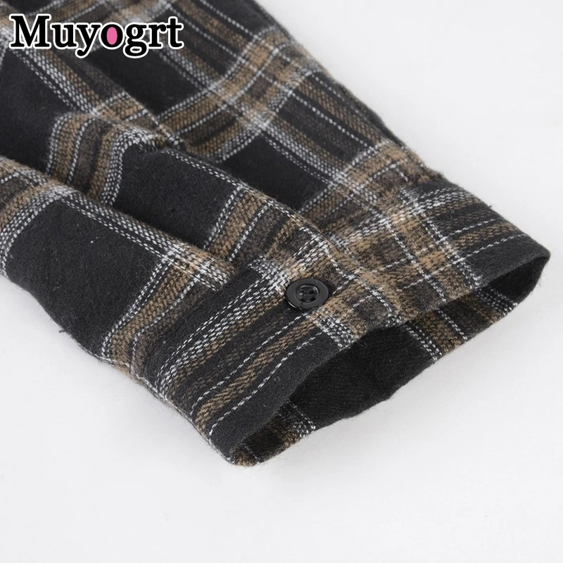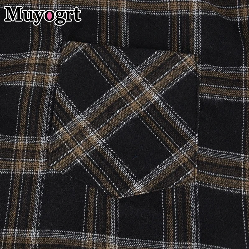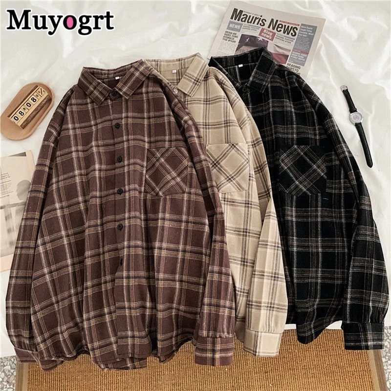 FREE SHIPPING Women Oversized Brown Plaid Shirt JKP4808
