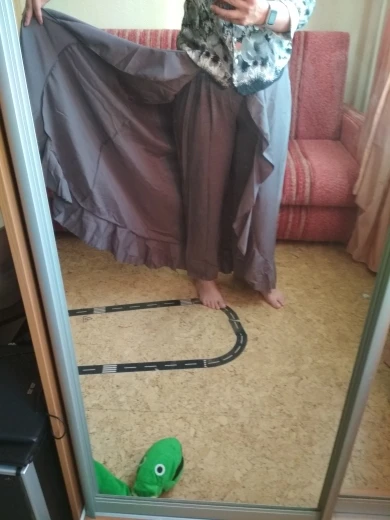 Good pants in size, not a lot of long train, but with a heel will normally go. Synthetics, the bow also did not really like it in front, but the press is enough to tie it behind. Or just try to tie beautifully. And so sewn neatly.