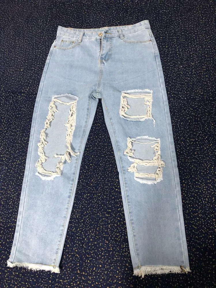 Very cool jeans, the fabric is natural jeans, the size matches. Holes as in the photo, in general i'm happy.